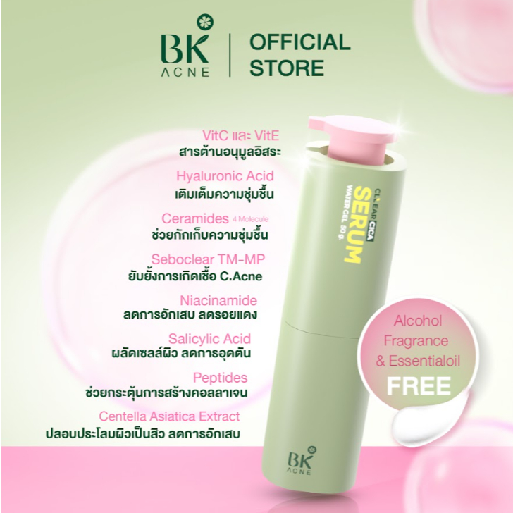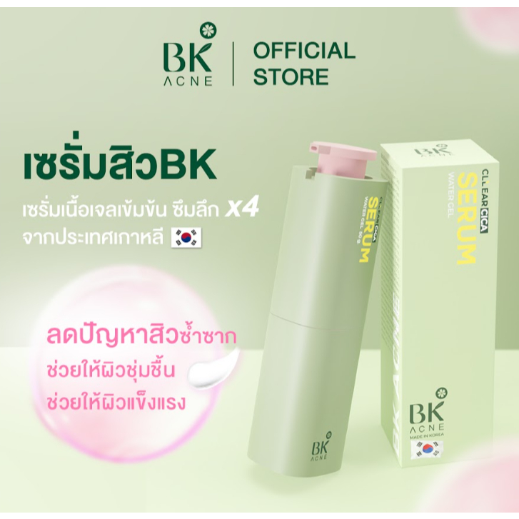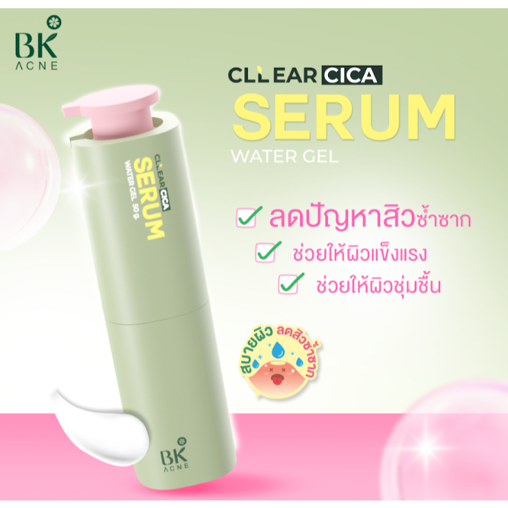 BK Acne Clear Cica Water Gel Serum บีเค แอคเน่ เคลียร์ ซิก้า วอเตอร์ เจล เซรั่ม [50 กรัม] เซรั่มสิว เนื้อเจลเข้มข้น เซรั