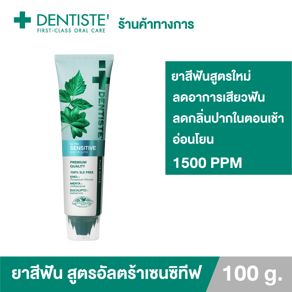 Dentiste' Ultra Sensitive 100 g. ยาสีฟันลดเสียวฟัน อ่อนโยน ฟลูออไรด์ 1500PPM ลมหายใจหอมสดชื่น สุขภาพช่องปากดี ลดฟันผุ