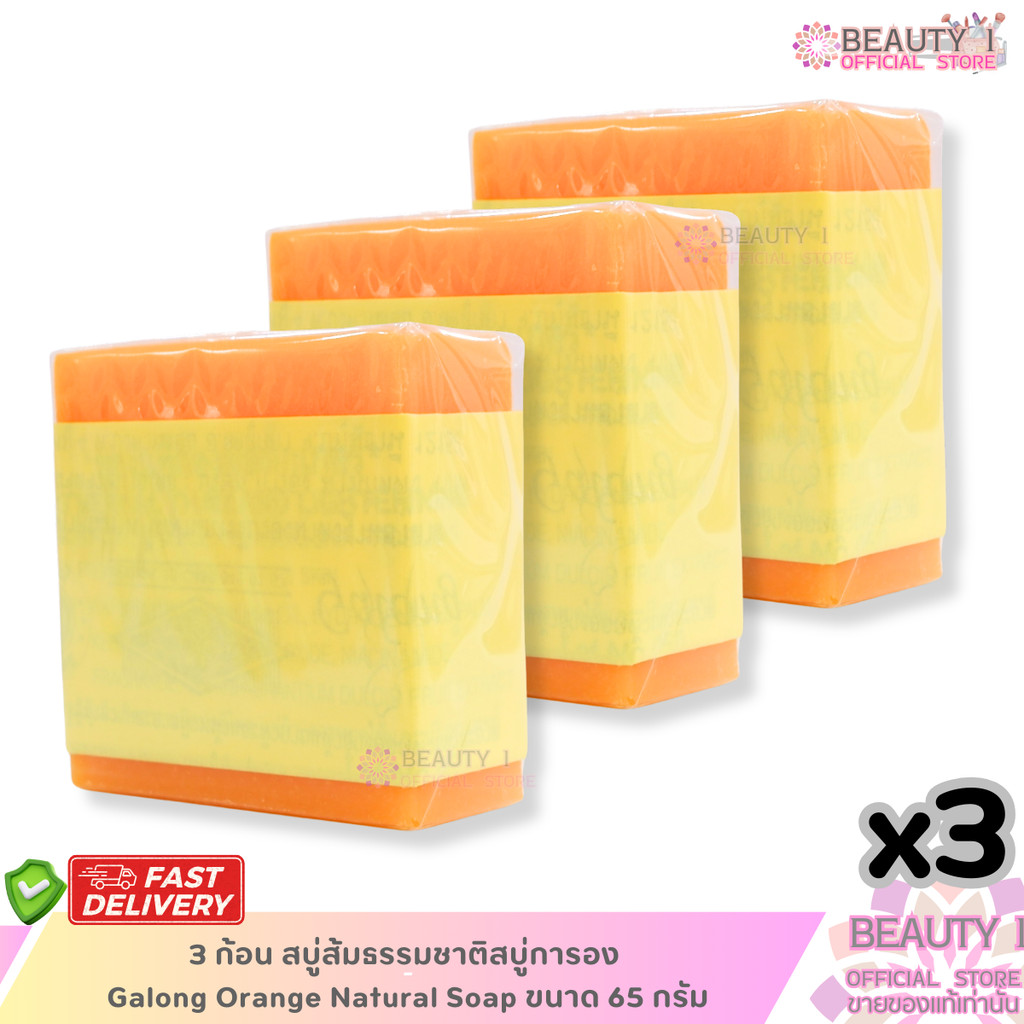 โปร 3 ก้อน สบู่ส้มธรรมชาติสบู่การอง Galong Orange Natural Soap ขนาด 65 กรัมx 3