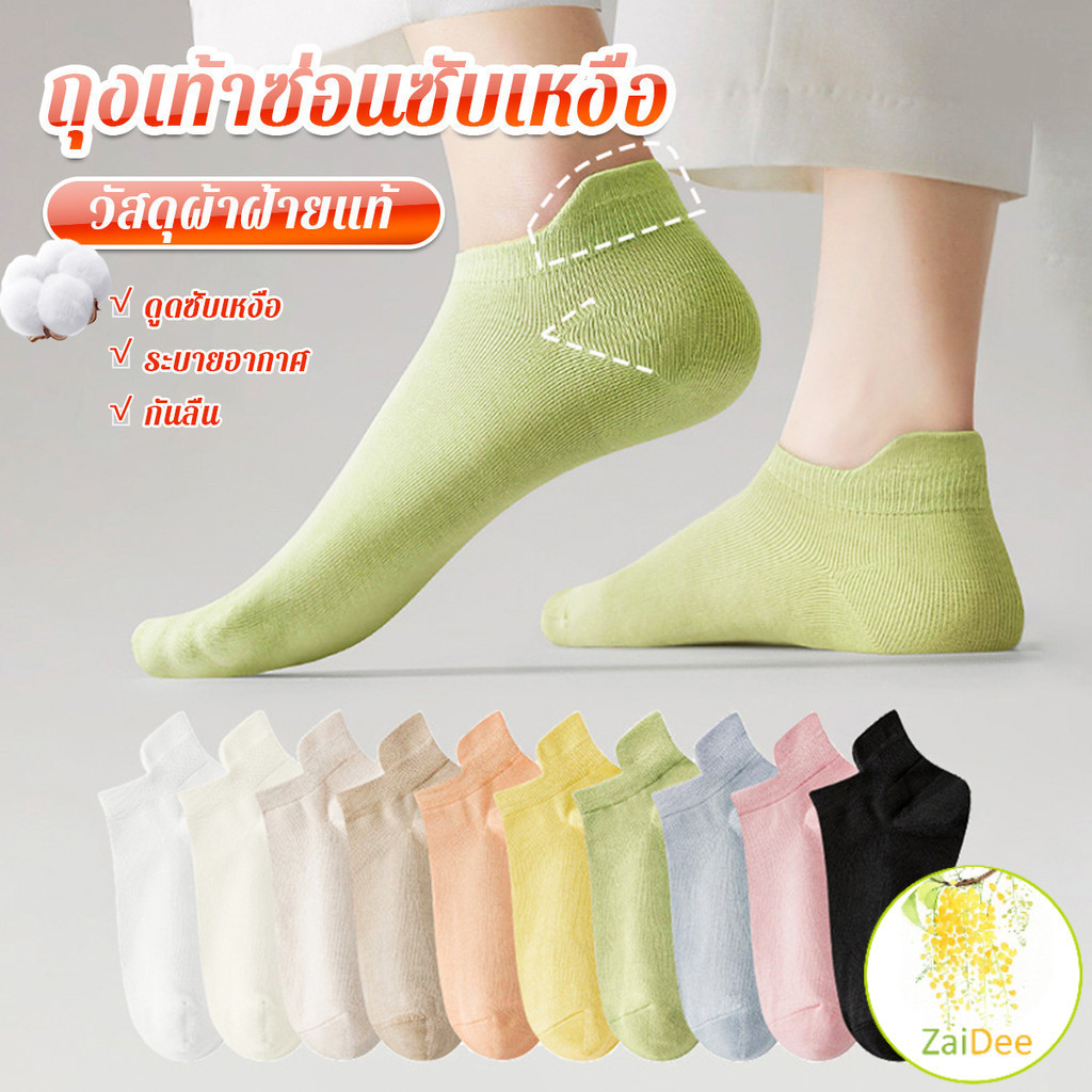 ถุงเท้าผู้หญิงผ้าฝ้าย ถุงเท้าซ่อนซับเหงื่อ กระชับแน่นไม่หลุดง่าย ซับเหงื่อสบายเท้า Boat socks