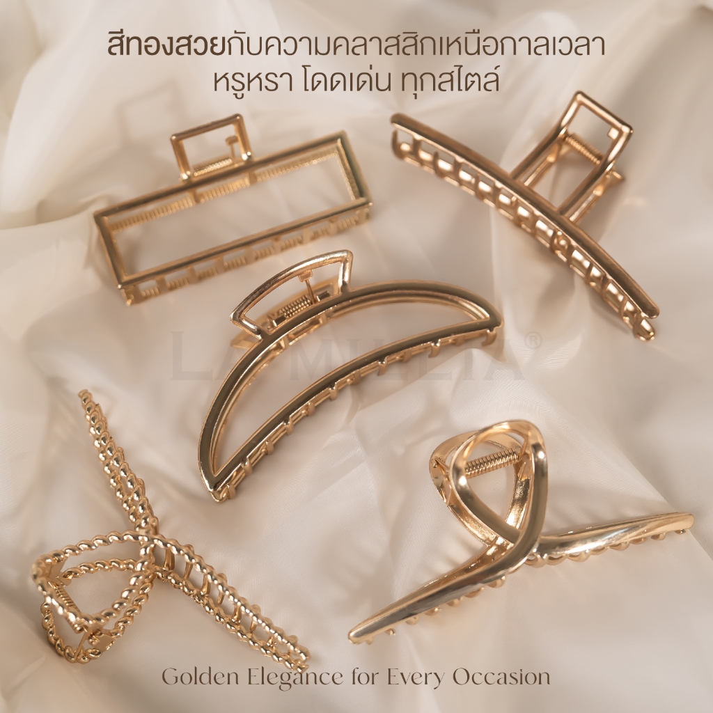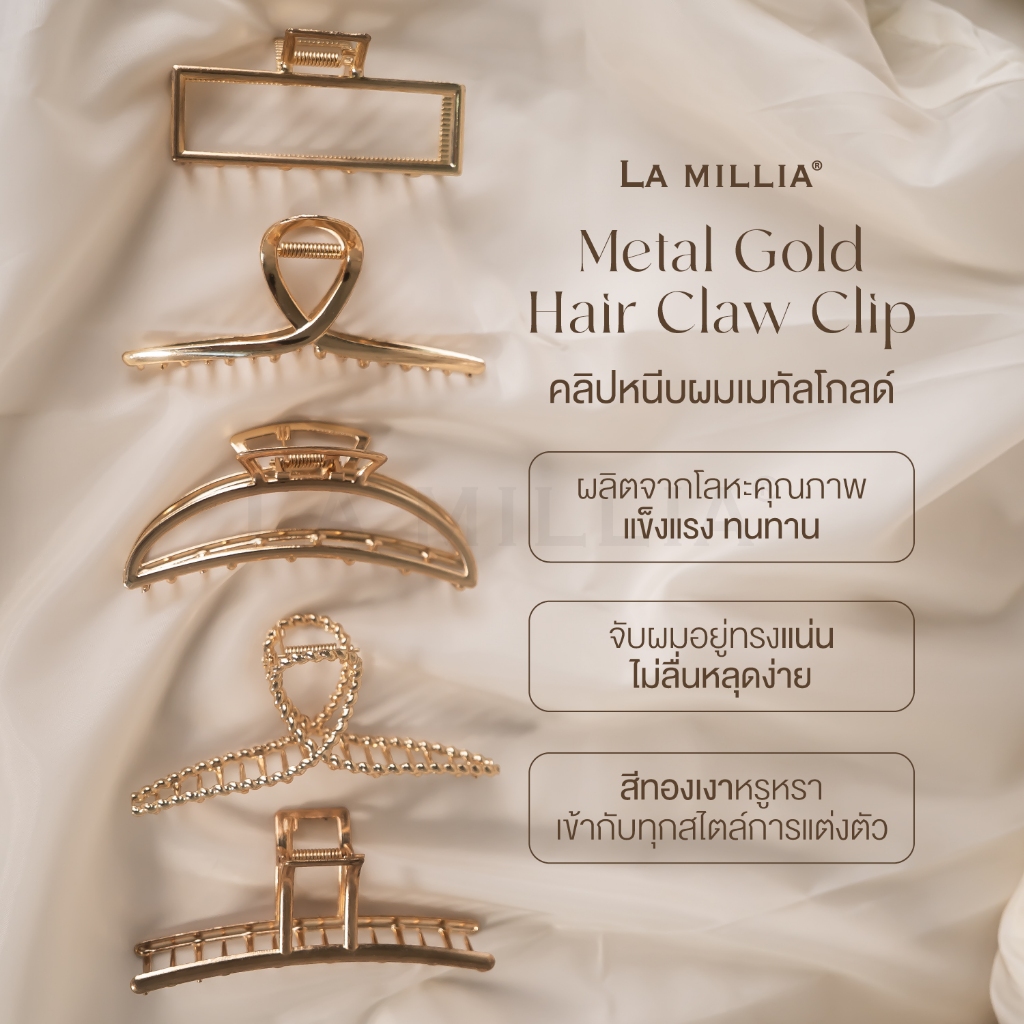 LA MILLIA Metal Gold Hair Claw Clip ลา มิลเลีย คลิปหนีบผม เมทัลโกลด์ กิ๊บหนีบผม หนีบแน่น ไม่หลุดง่าย เรียบหรู