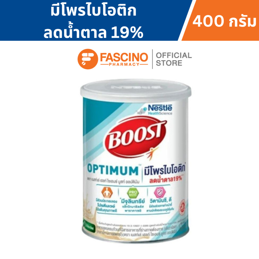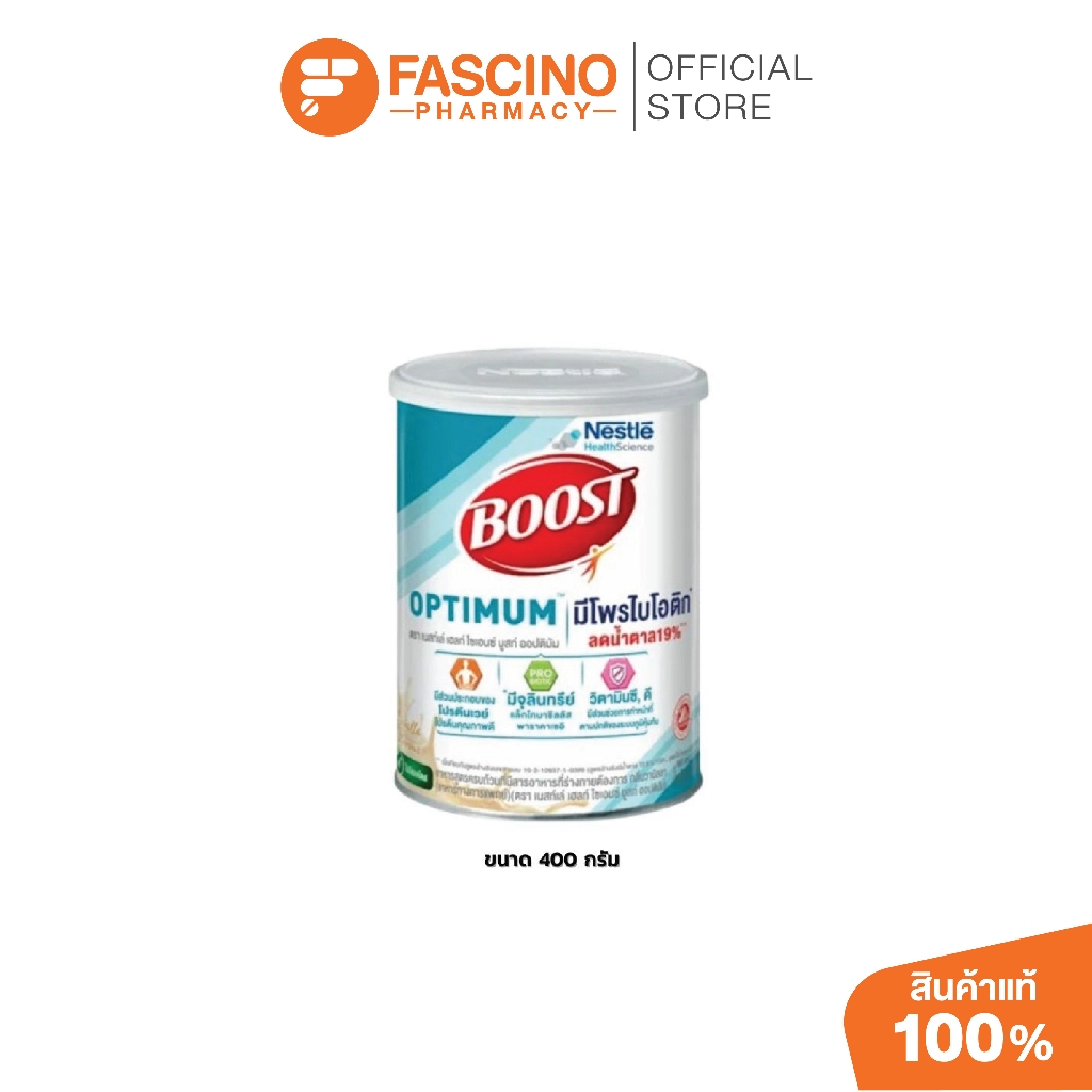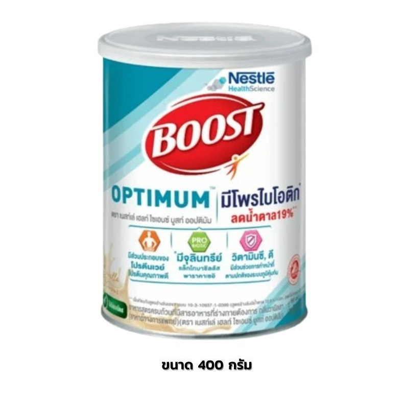 Nestlé Boost Optimum กลิ่นวานิลลา 400 กรัม – อาหารสูตรครบถ้วน, อาหารเสริมผู้ป่วย โปรตีน