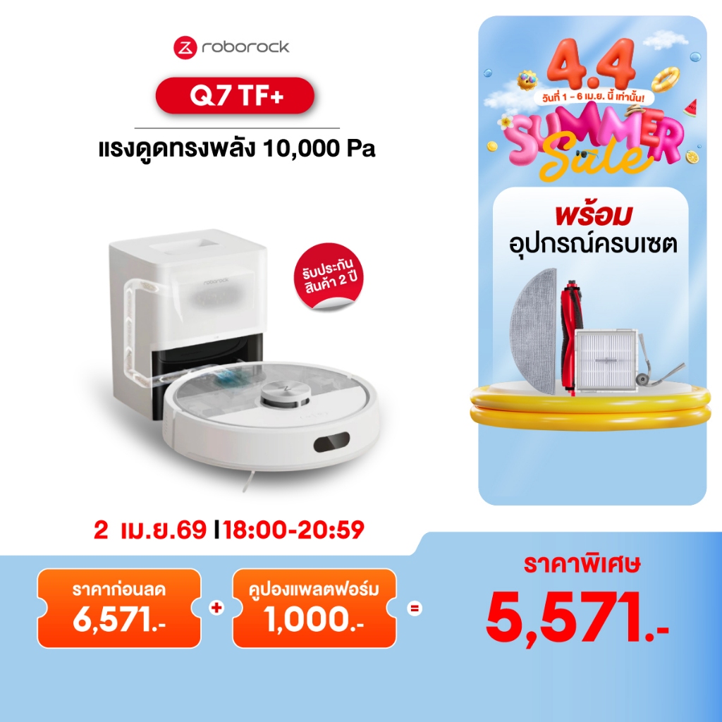 Roborock Q7 TF+ หุ่นยนต์ดูดฝุ่น ถูพื้น อัจฉริยะ Precise® LiDAR แรงดูด 10,000 Pa+แท่น