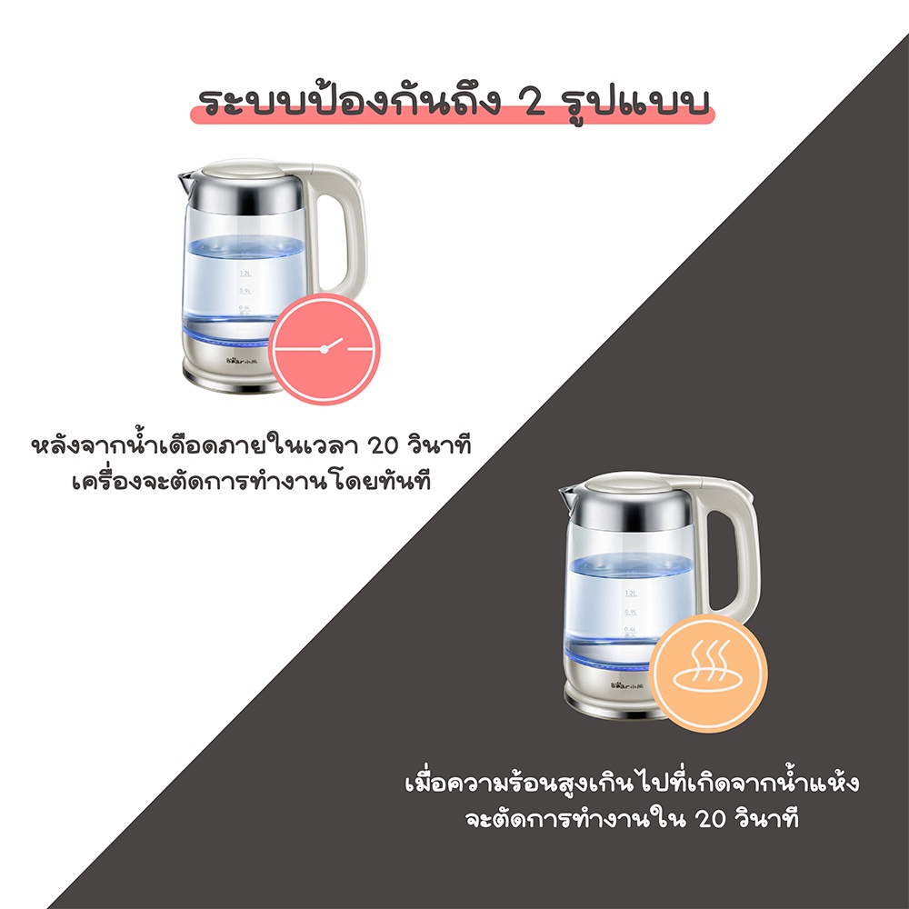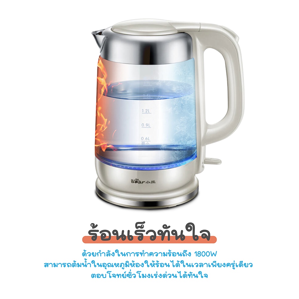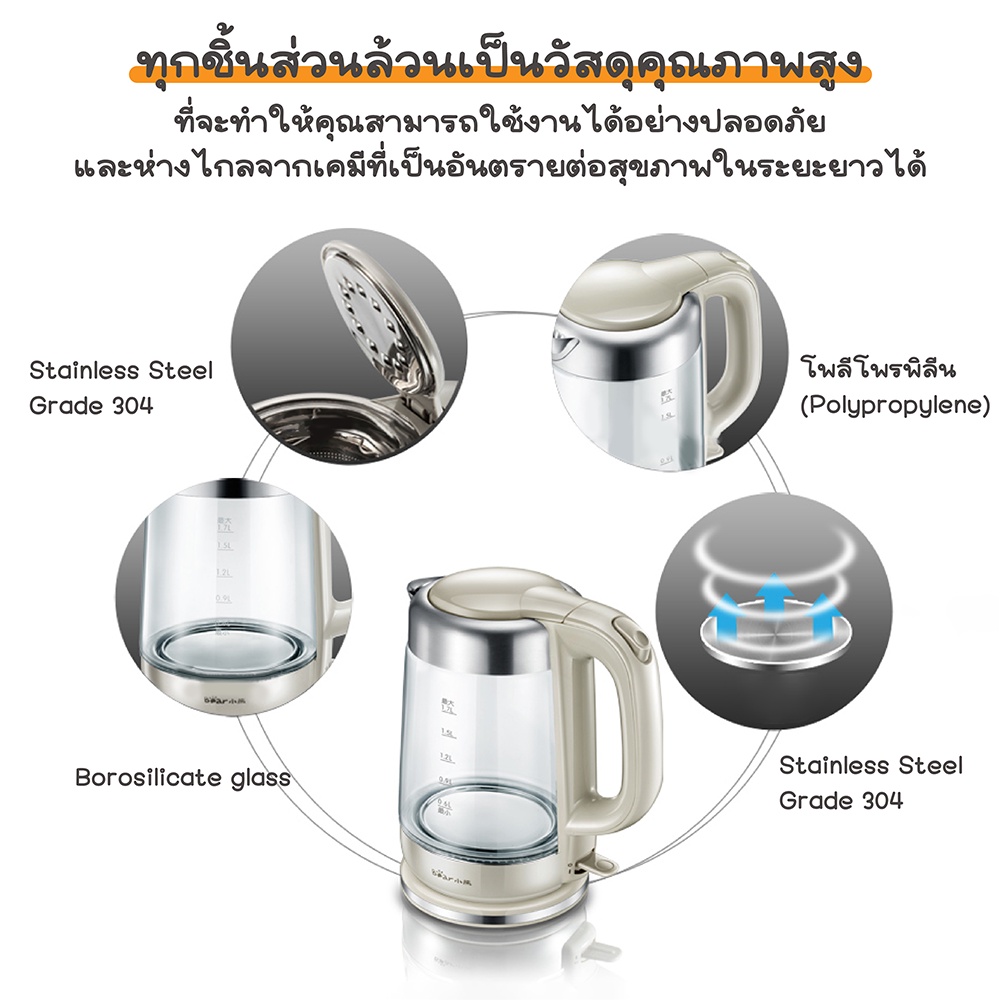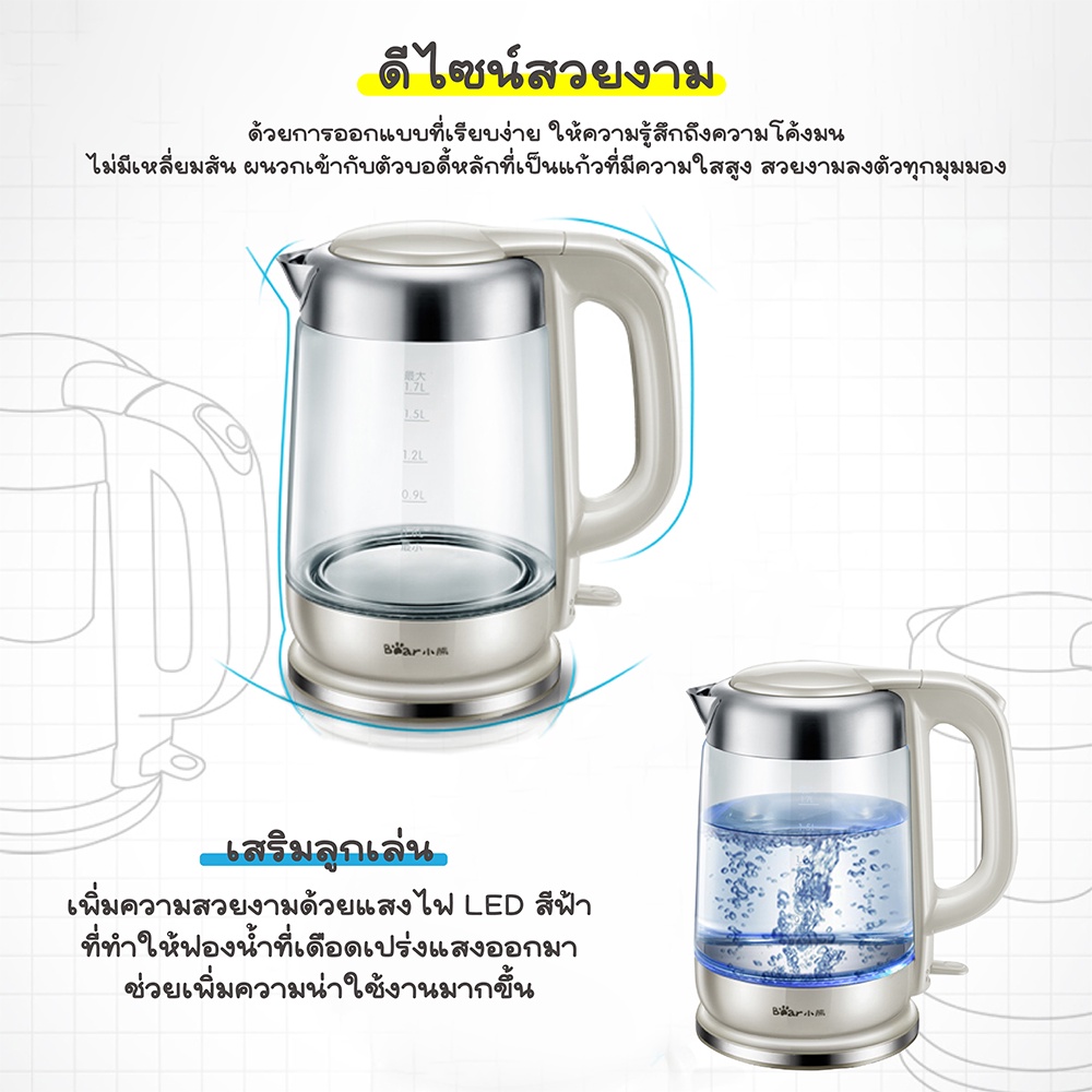 [ลดเหลือ 824] Bear Electric Kettle ZDH-A17G5 กาต้มน้ำ กำลังไฟ 1800W ความจุ 1.7 ลิตร ฟรีปลั๊ก!! -30D