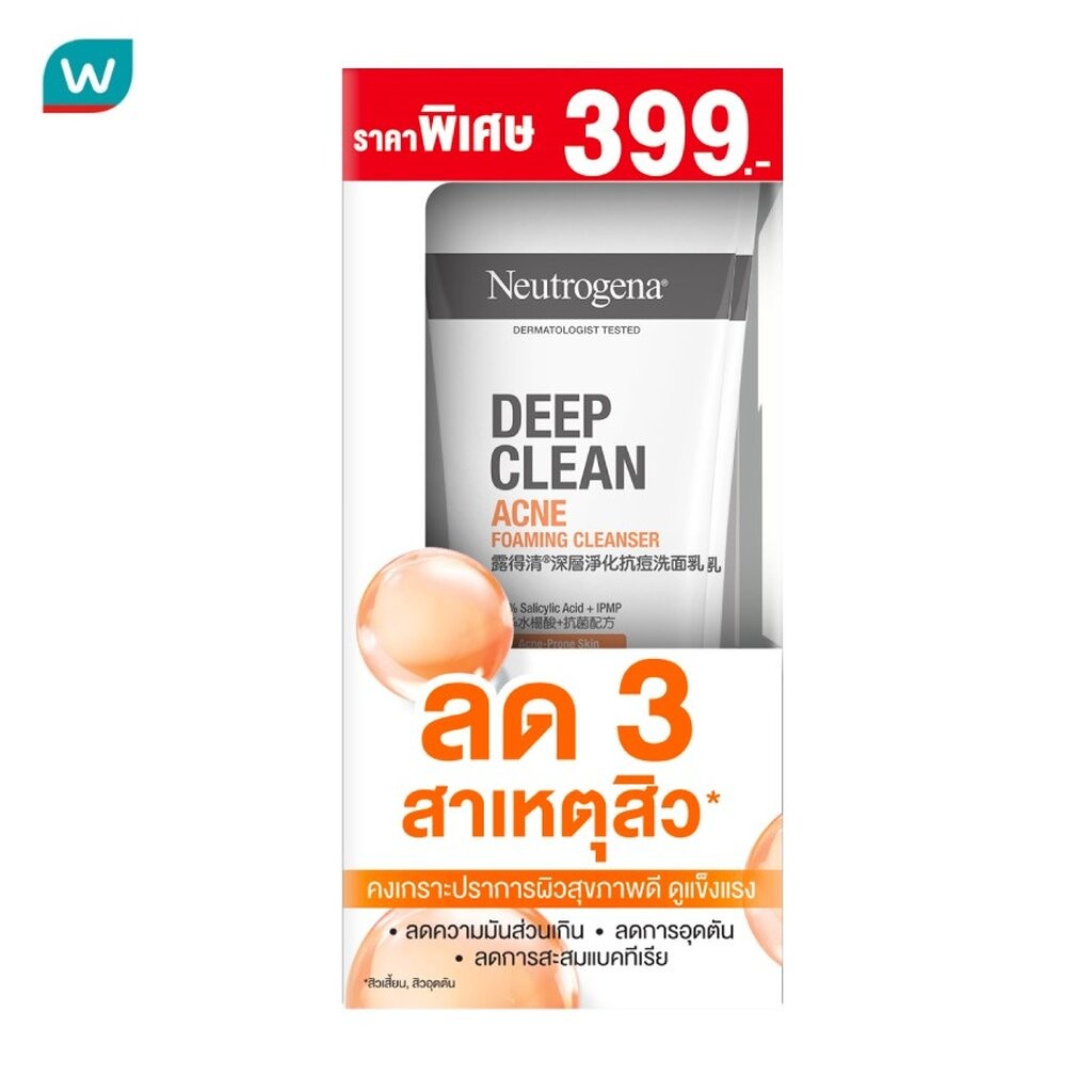 Neutrogena นูโทรจีนา ดีพ คลีน แอคเน่ โฟมมิ่ง คลีนเซอร์ 150 กรัม แพ็คคู่ โฟมล้างหน้า