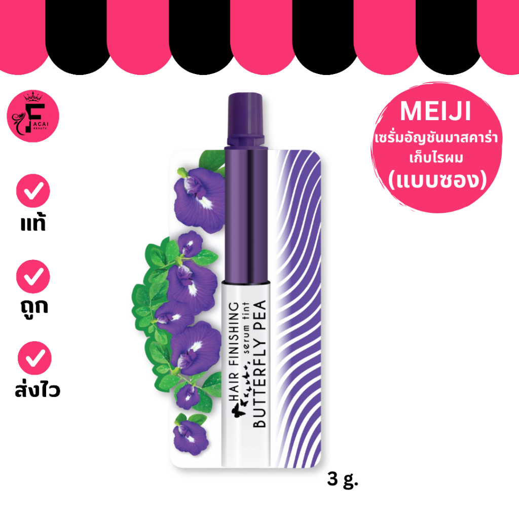 (1 ซอง) Meiji Butterfly Pea Hair Serum – เมจิ บัตเตอร์ฟลาย พี แฮร์ เซรั่มเก็บไรผม (3 g.)