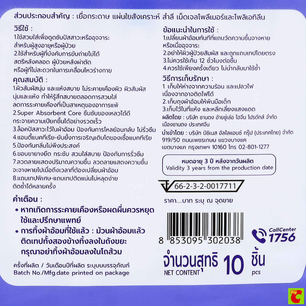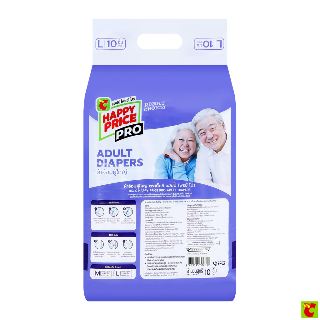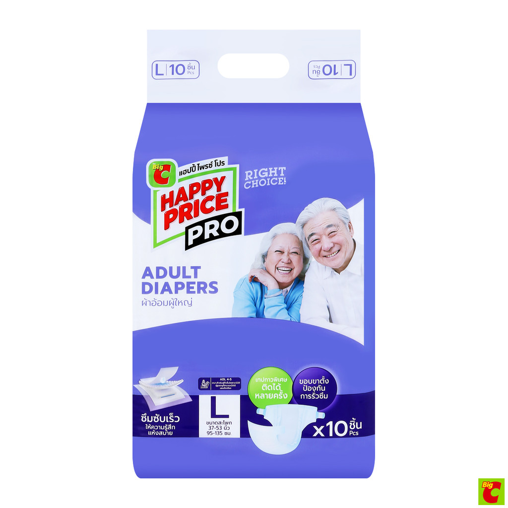 บิ๊กซี แฮปปี้ ไพรซ์ โปร ผ้าอ้อมผู้ใหญ่ ไซส์ L แพ็ค 10 ชิ้น