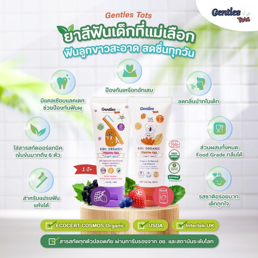 Gentles Tots -ยาสีฟันเด็กออร์แกนิค ปลอดภัย ใช้ได้ตั้งแต่ฟันซี่แรก