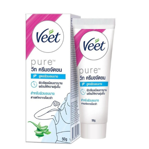 ลดเพิ่ม 30%🔥 Veet วีท ครีมขจัดขน เพียว อโลเวร่า ผิวบอบบาง 50 กรัม ครีมกำจัดขน แว๊กซ์ขน