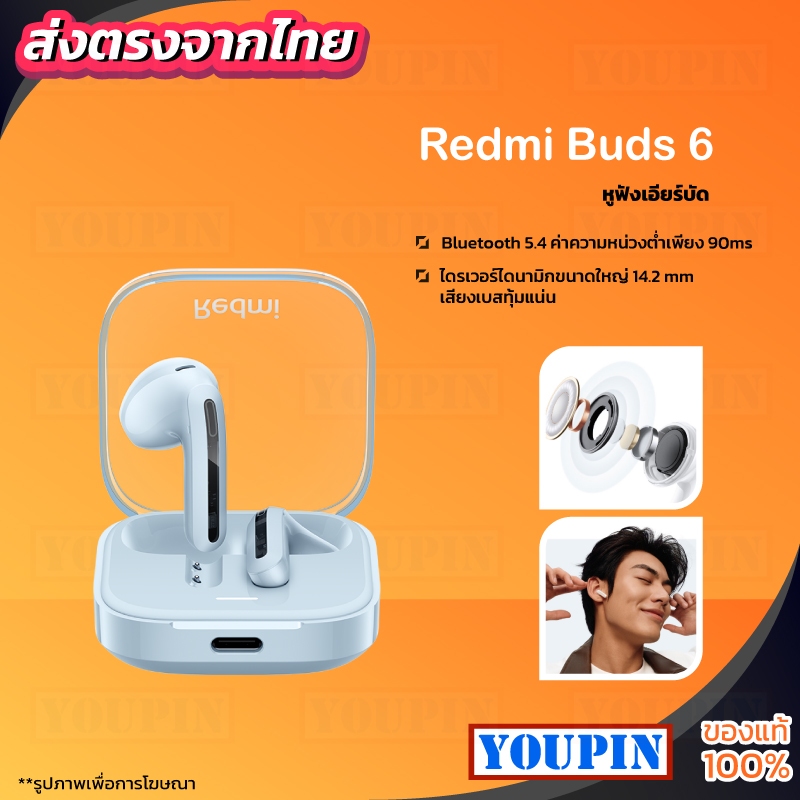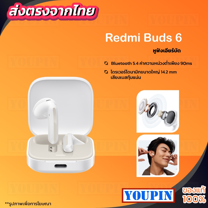Xiaomi Redmi Buds 6 Active Wireless Bluetooth Earphone หูฟังบลูทูธไร้สาย ลดเสียงรบกวนการโทร เล่นได้นาน