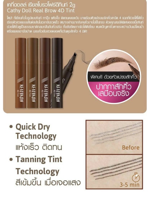 (โฉมใหม่)Cathy Doll เคที่ดอลล์ เรียลโบว์ ดินสอเขียนคิ้ว 4 มิติ Real Brow 4D Tint 2g.พ