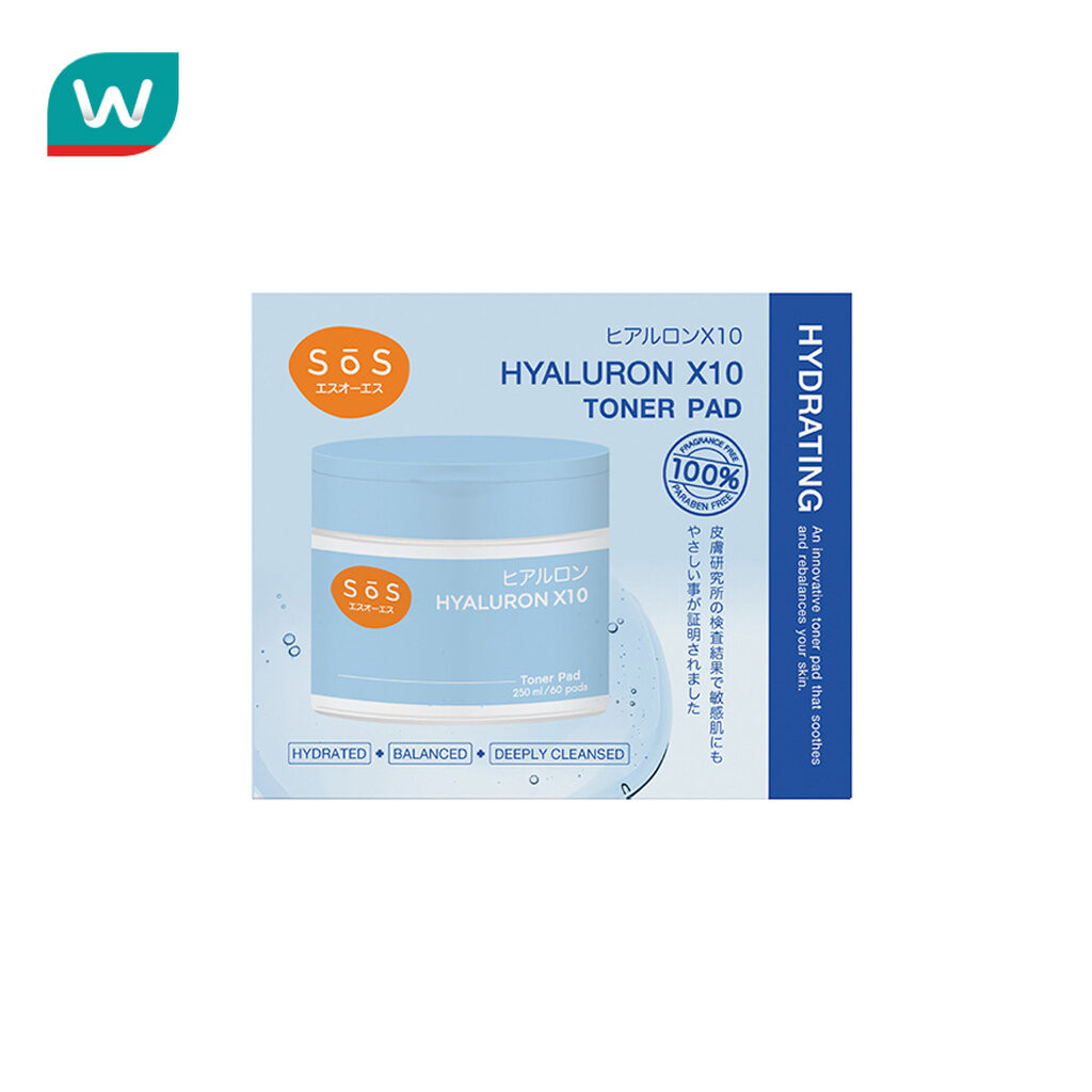 SoS เอะสึ โอ เอะสึ ไฮยาลูรอน เอ็กซ์ 10 โทนเนอร์ แพด 250 มล. (ุ60 แผ่น)