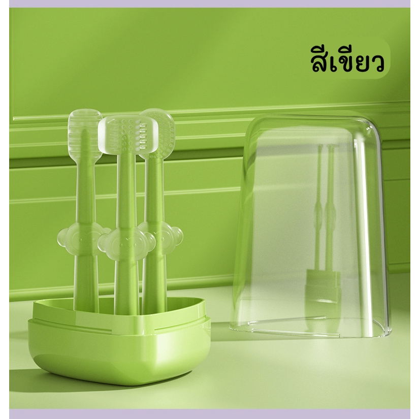 ชุดแปรงสีฟันเด็ก ( Ab97) หัวแปรงซิลิโคน 0-18 เดือน