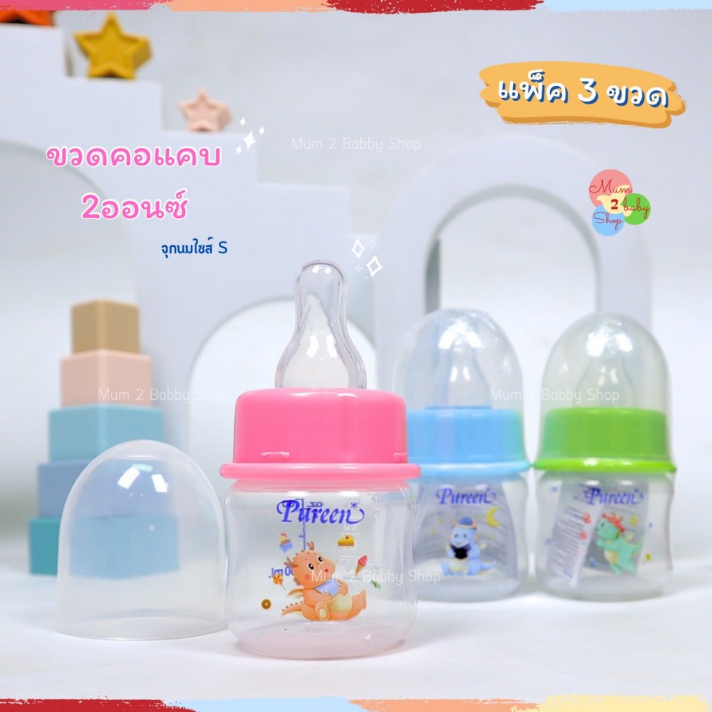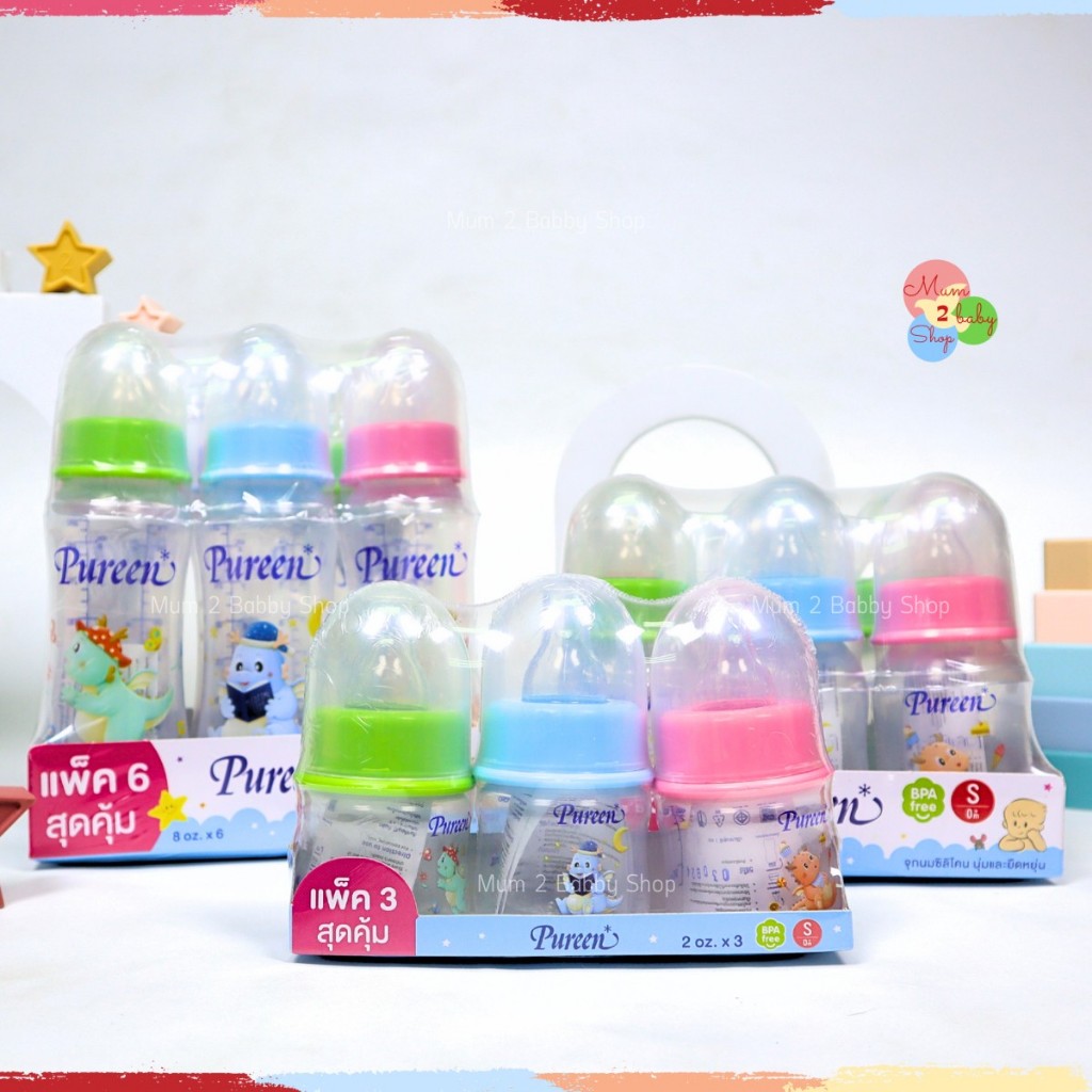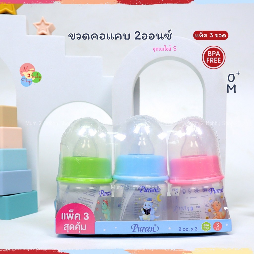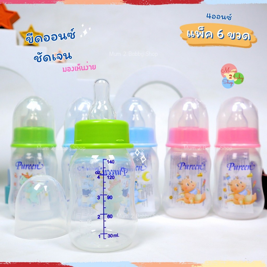 Pureen เพียวรีน ขวดนมเด็กยกแพ็ค ขวดนม คอแคบ 2ออนซ์,4ออนซ์,8ออนซ์ แถมฟรีจุกนมทุกขวด