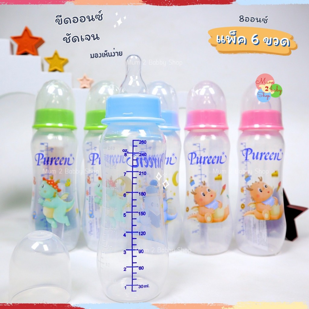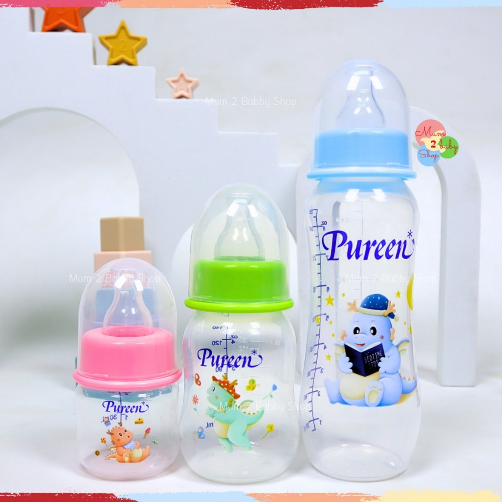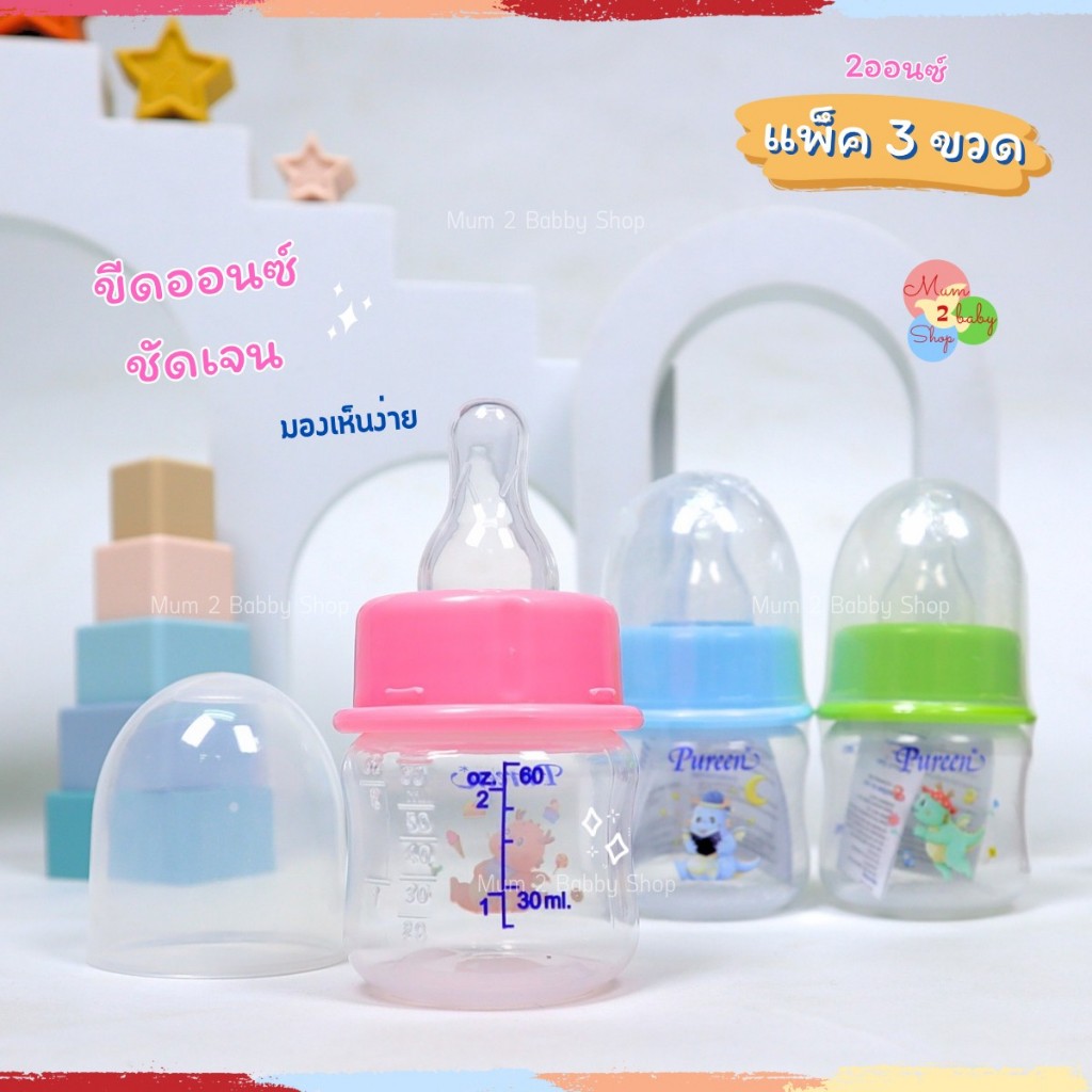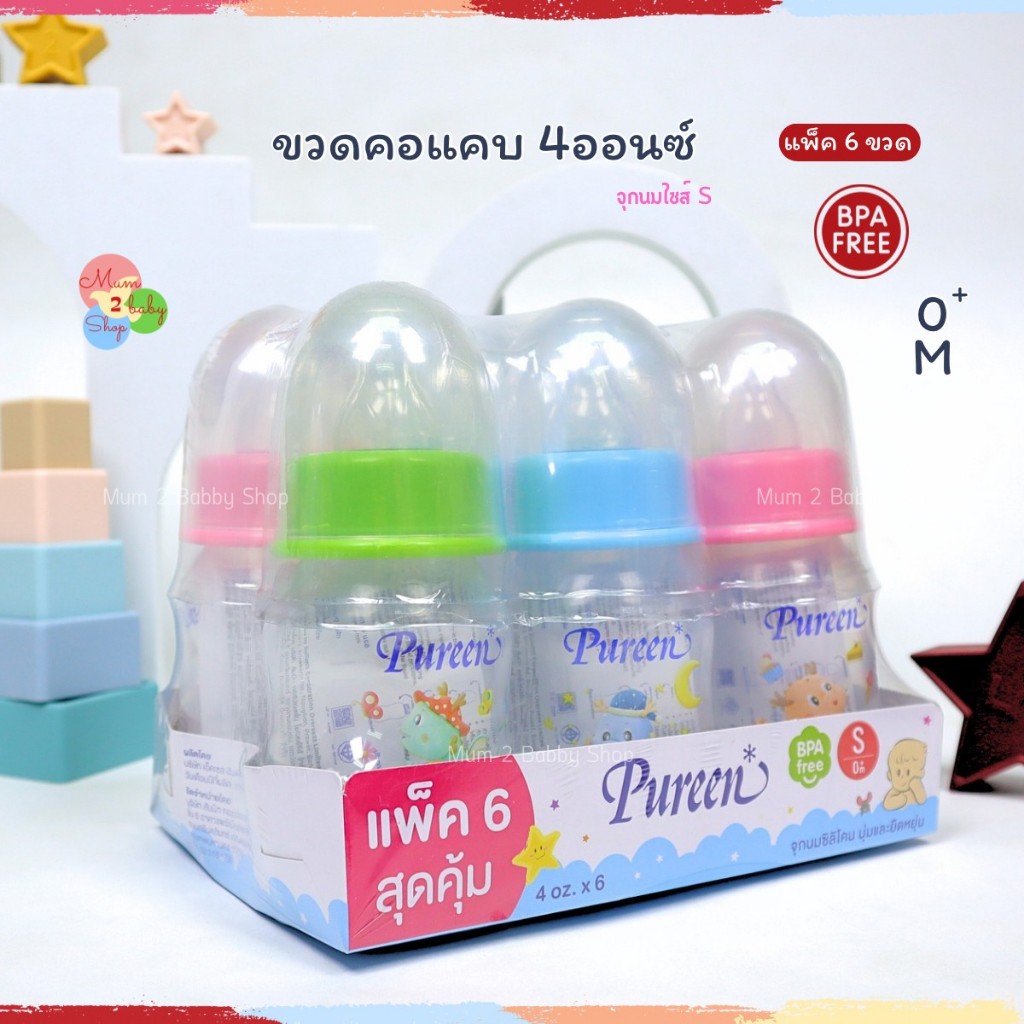 Pureen เพียวรีน ขวดนมเด็กยกแพ็ค ขวดนม คอแคบ 2ออนซ์,4ออนซ์,8ออนซ์ แถมฟรีจุกนมทุกขวด