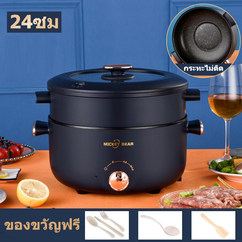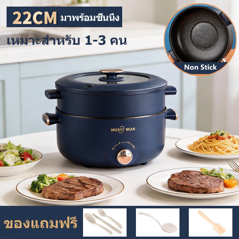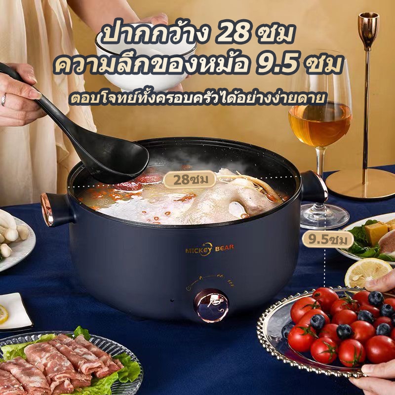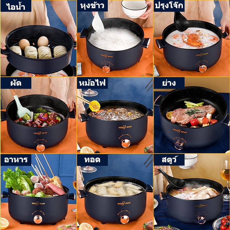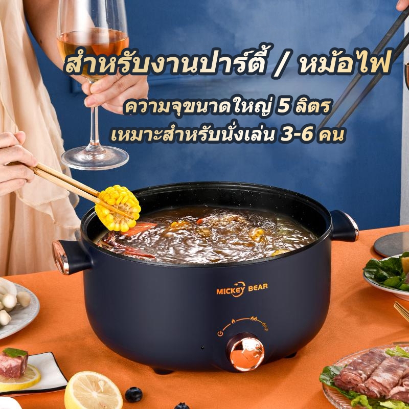 5Lหม้อไฟฟ้า หม้อมัลติฟังก์ชั่น 1000W ความจุขนาดใหญ่ 5 ลิตร กระทะไฟฟ้า กระทะที่ไม่ติด 3 สปีด 28cm หม้อต้มไฟฟ้า