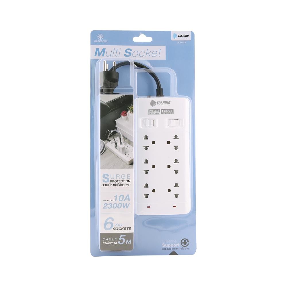TOSHINO รางปลั๊กไฟ 6 ช่อง 2 สวิตช์ 10A SOD-65 5 ม. จัดส่งโดย HomePro