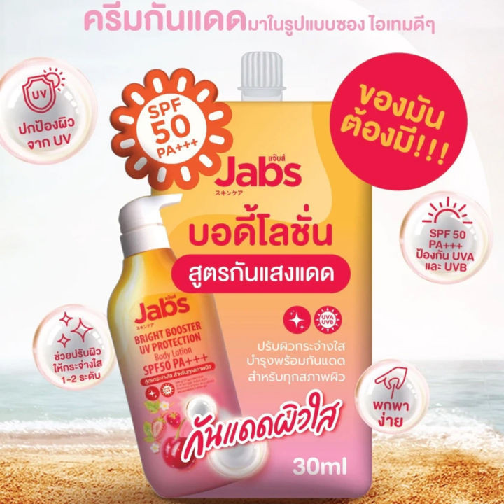 ( 1กล่อง 4ซอง ) โลชั่นกันแดด Jabs Body Lotion Bright Booster แจ๊บส์ บอดี้ โลชั่น ไบร์ท บูสเตอร์ 30 ml./1ซอง