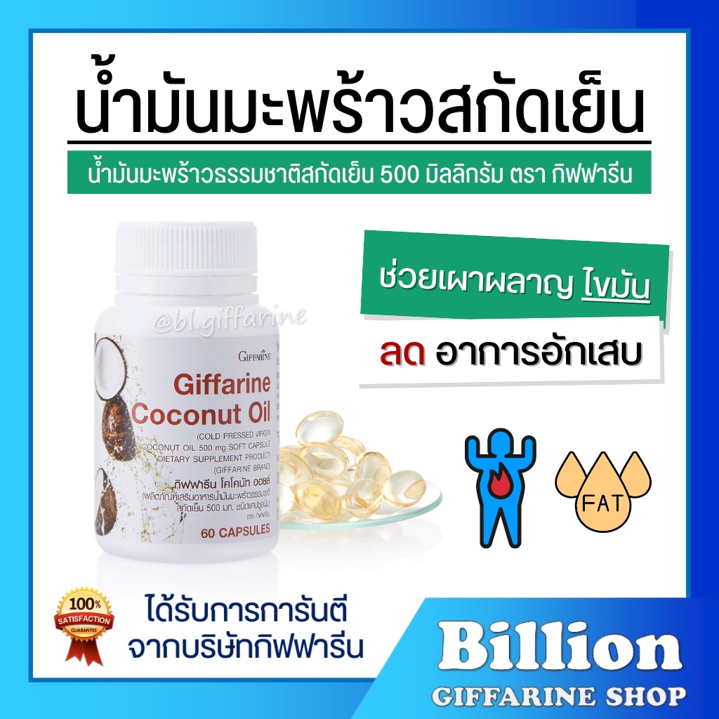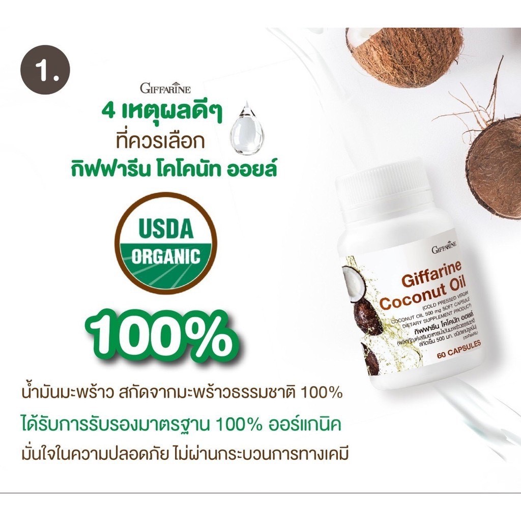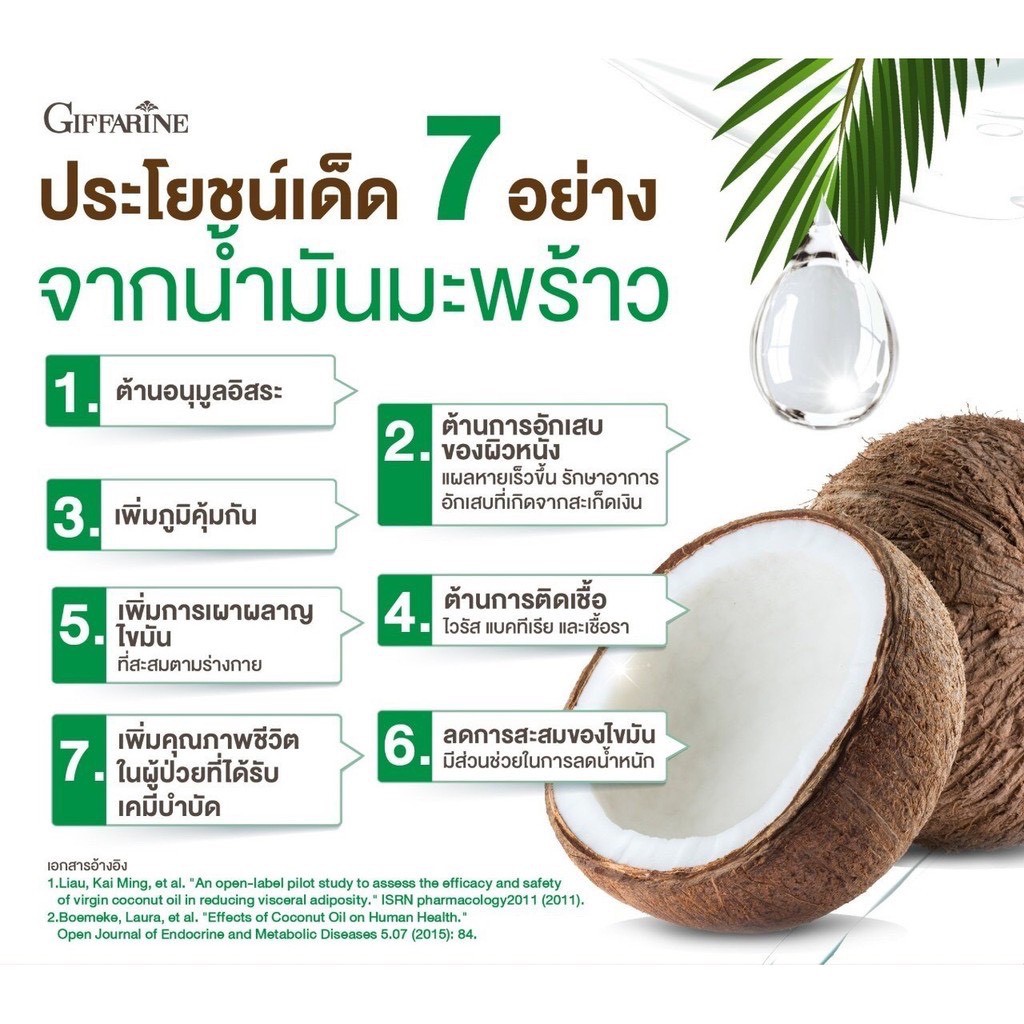 [ ส่งฟรี ] น้ำมันมะพร้าวสกัดเย็น 100% กิฟฟารีน Coconut Oil Organic GIFFARINE ป้องกันโรคตับอักเสบ
