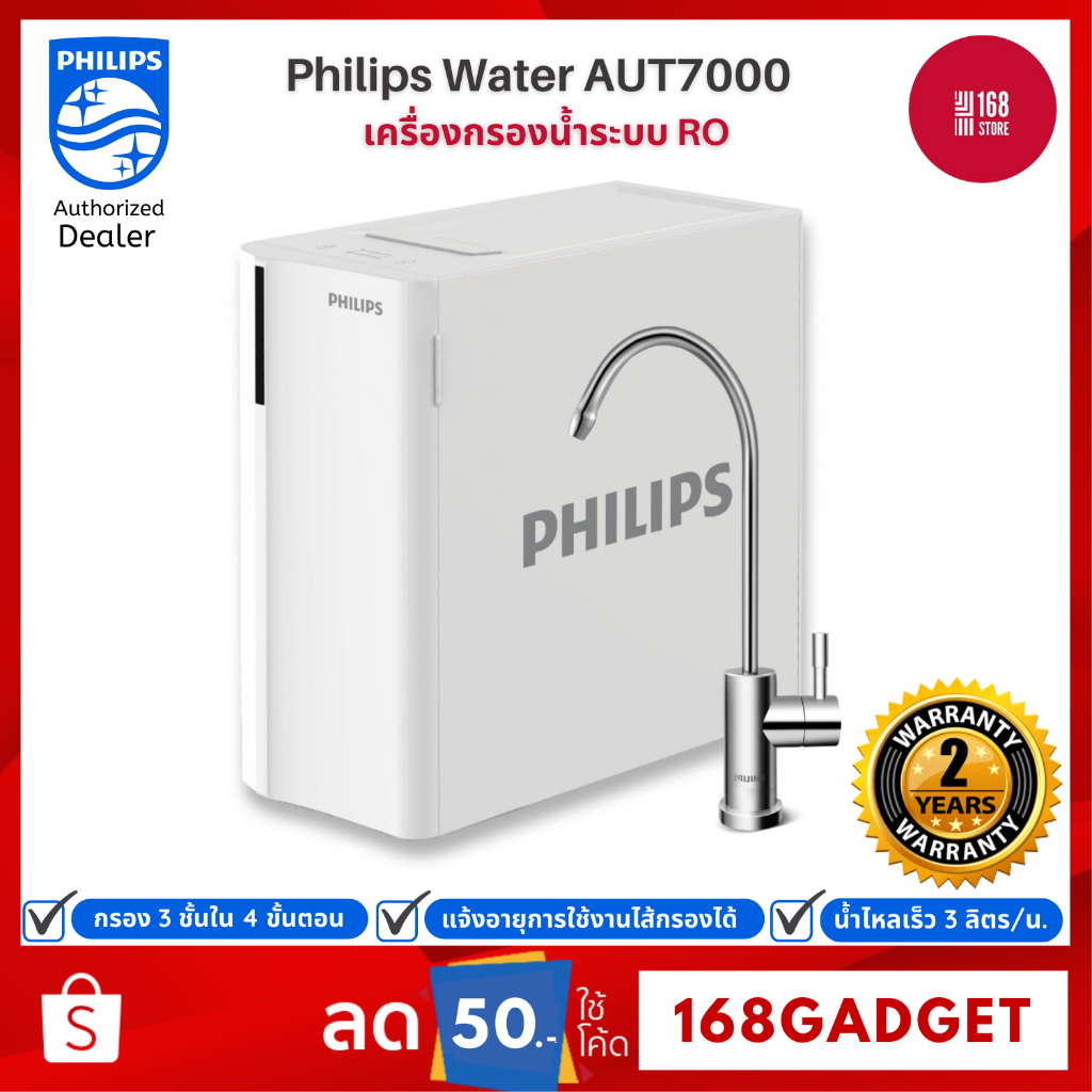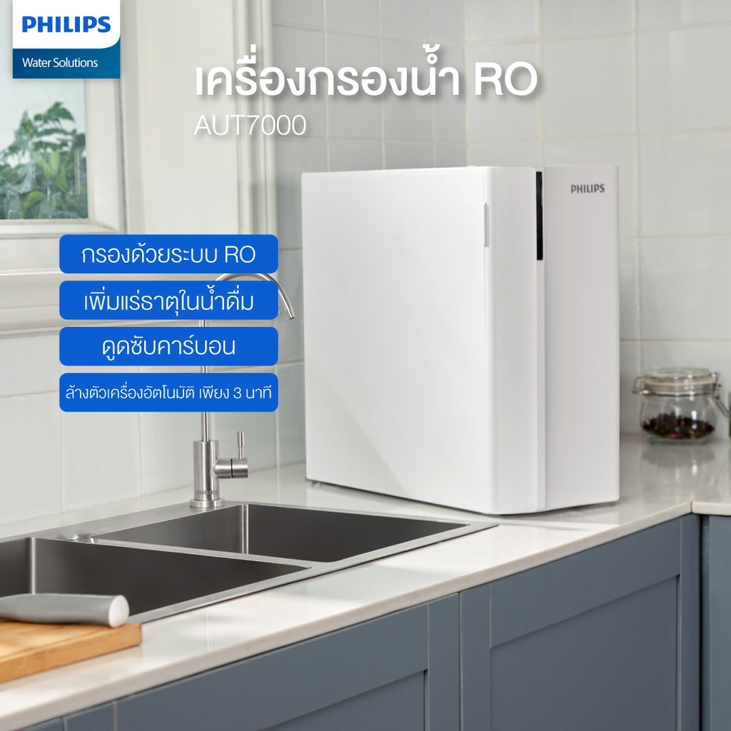 Philips water AUT7000 เครื่องกรองน้ํา RO เครื่องกรองน้ําประปา กรอง 3 ชั้นใน 4 ขั้นตอน ช่วยเพิ่มแร่ธาตุนํ้า สีขาว