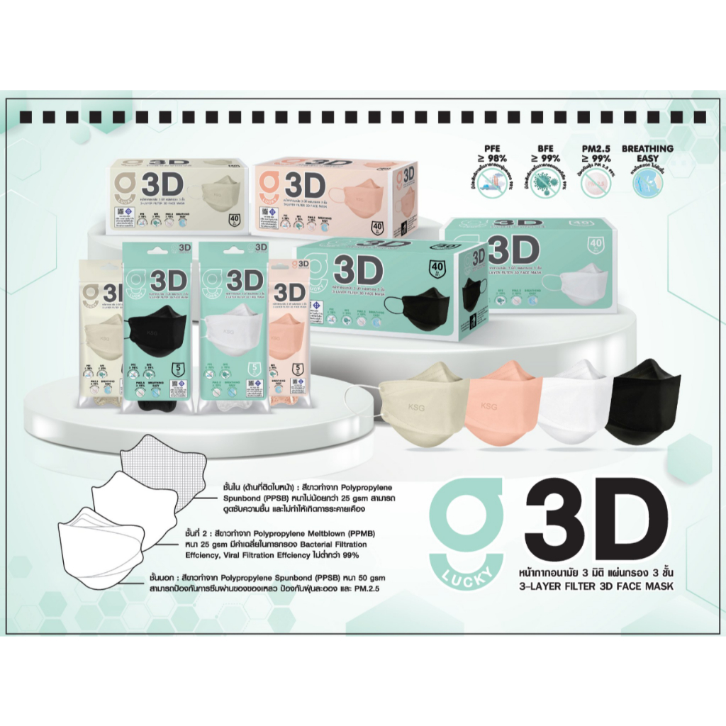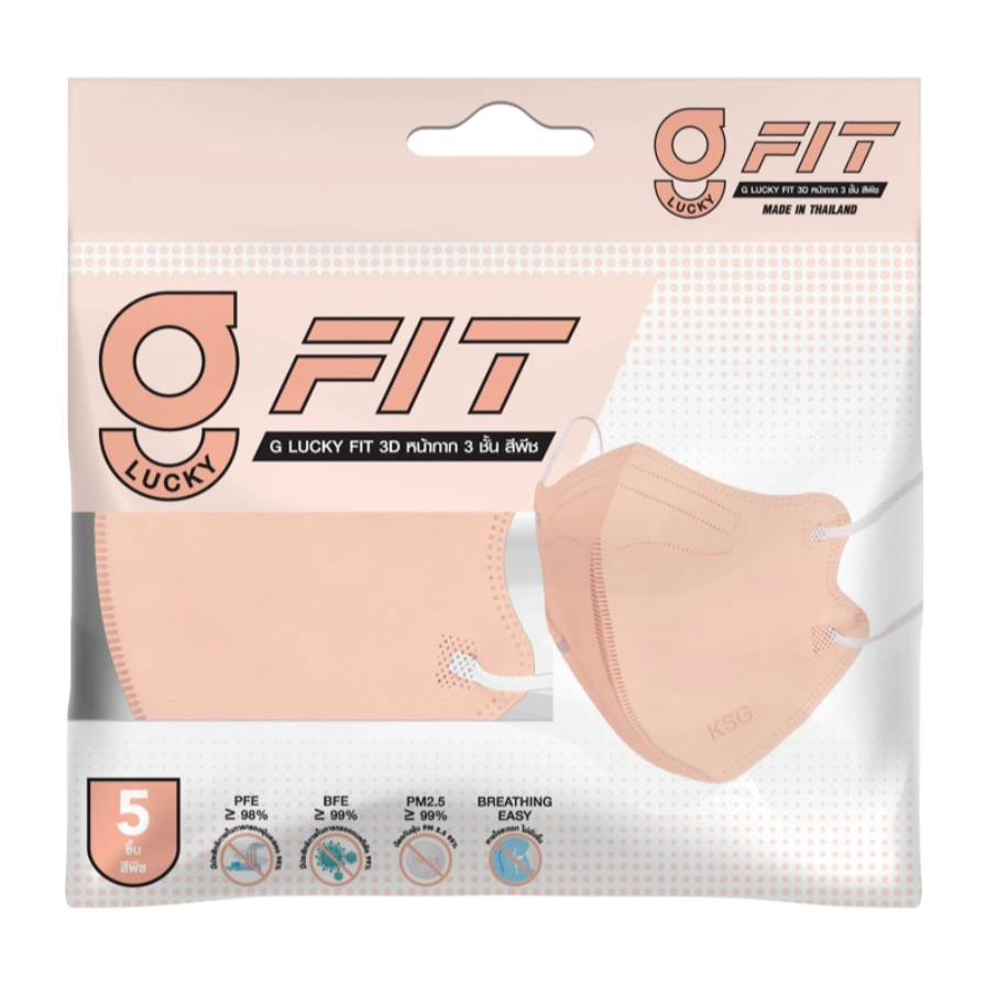 G Lucky Fit จี ลัคกี้ หน้ากากอนามัย 3ชั้น 5 ชิ้น/ซอง