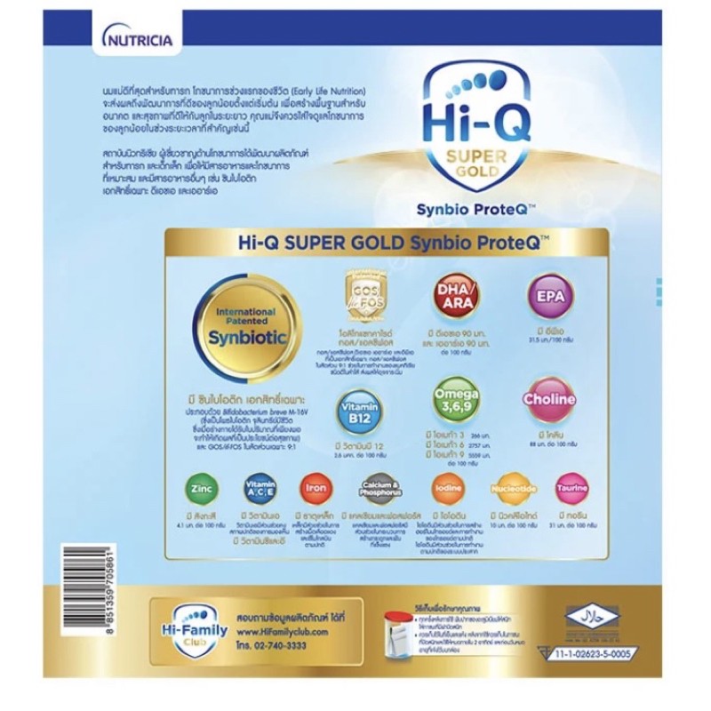 Hi-Q 2 นมผง ไฮคิว สำหรับเด็ก ช่วงวัยที่2 ซุปเปอร์โกลด์ สำหรับทารกตั้งแต่ 6เดือนถึง3ปี ขนาด 1,800กรัม
