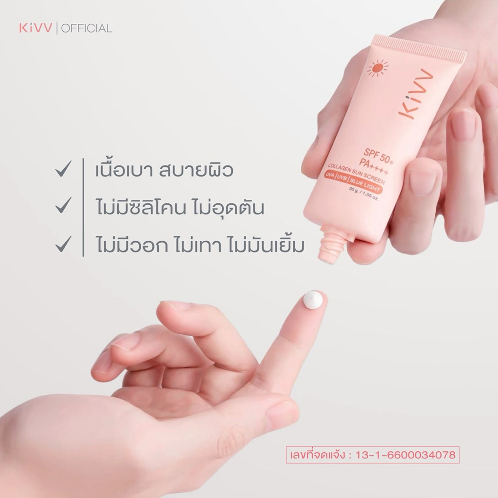 Kivv Collagen Sunscreen กันแดดเนื้อบางเบา SPF 50+ PA++++ ไม่อุดตันผิว ไม่มีซิลิโคน 30 ml.