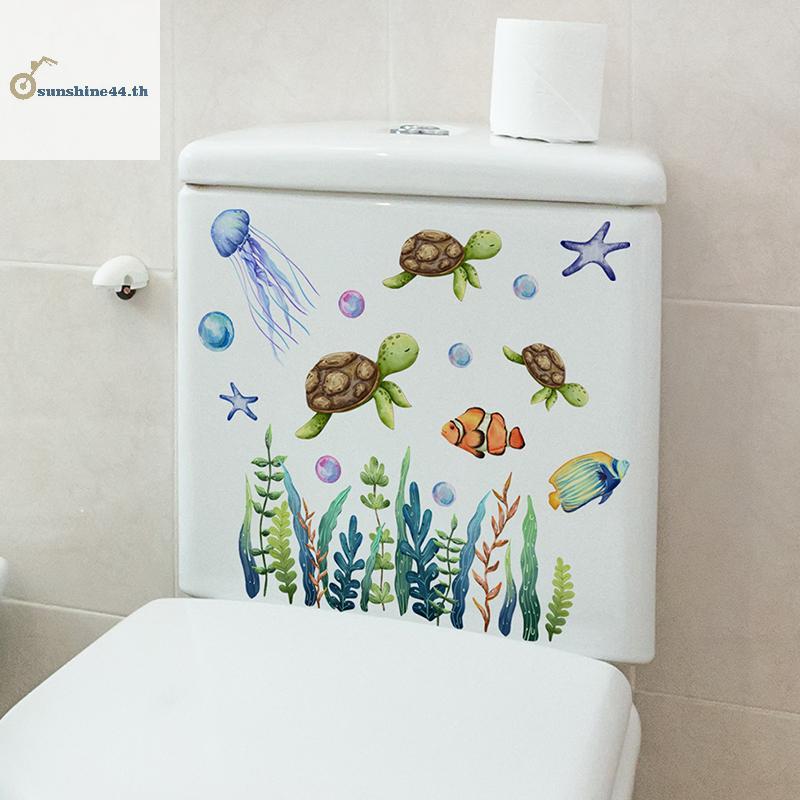 FOURSUN 11PC Seabed สัตว์สติกเกอร์ห้องน้ํา WC Self กาวภาพวาดที่ถอดออกได้ห้องน้ํา Decal ตกแต่งห้องสติ๊กเกอร์ติดผนัง TH