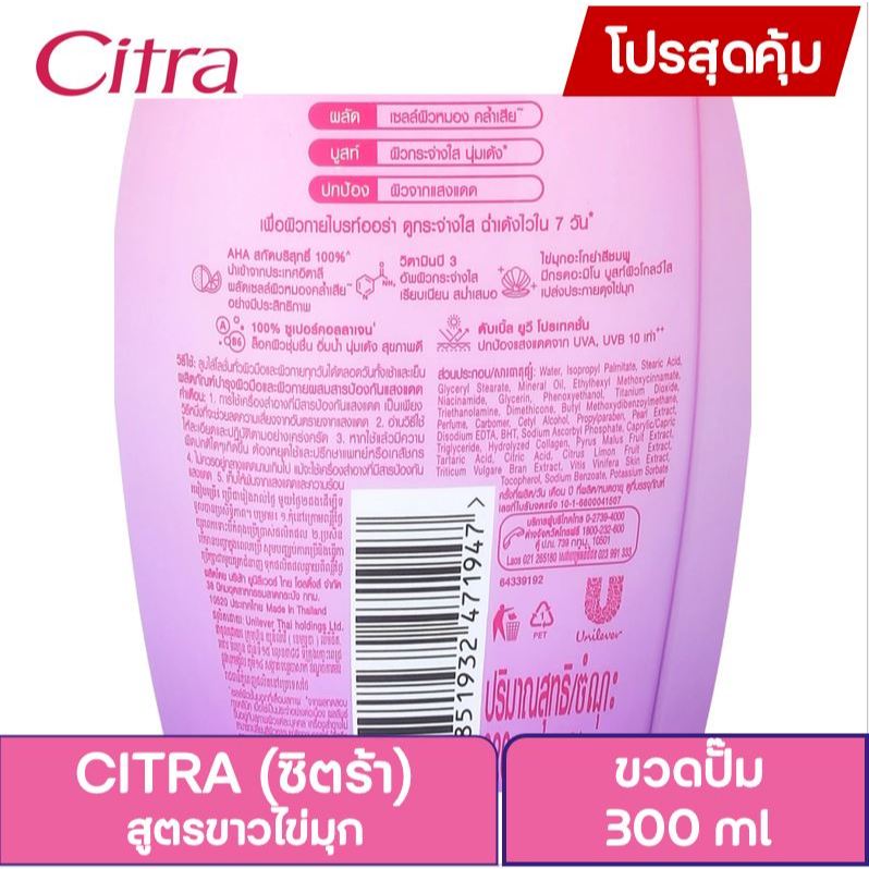 Citra ซิตร้า เอเอชเอ เพิร์ล ยูวี ไบรท์ โลชั่น 300 มล.(เดี่ยว+แพ็คคู่) ผิวไบรท์ ออร่า ดูกระจ่างใส