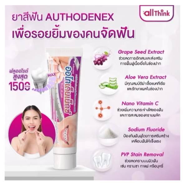 ยาสีฟัน Authodenex สำหรับคนจัดฟัน และสูตรฟันขาว กำจัดแบคทีเรีย 100g ออโทเด็นเน็กซ์