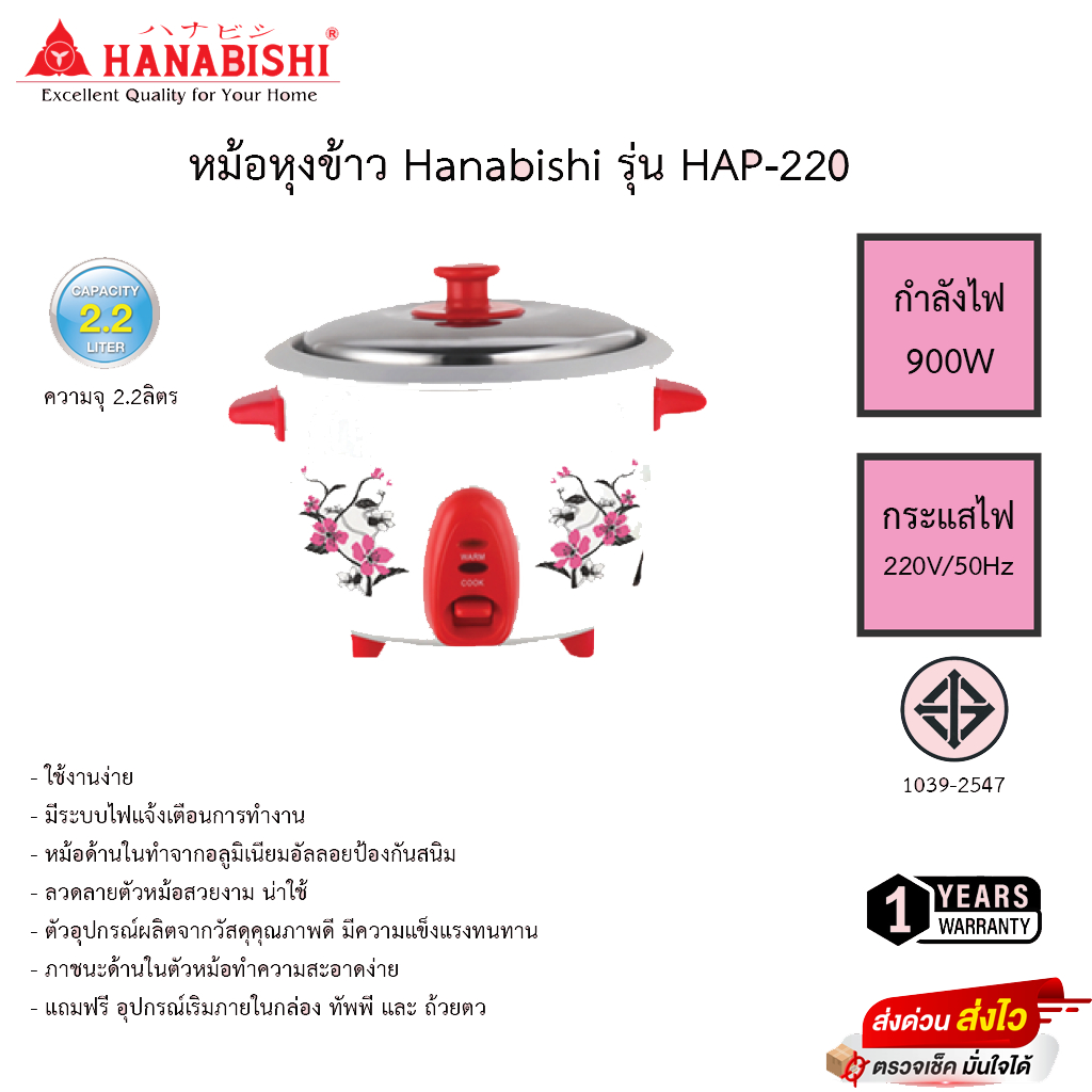 หม้อหุงข้าว Hanabishi รุ่น HAP-220 รับประกันสินค้า 1ปี