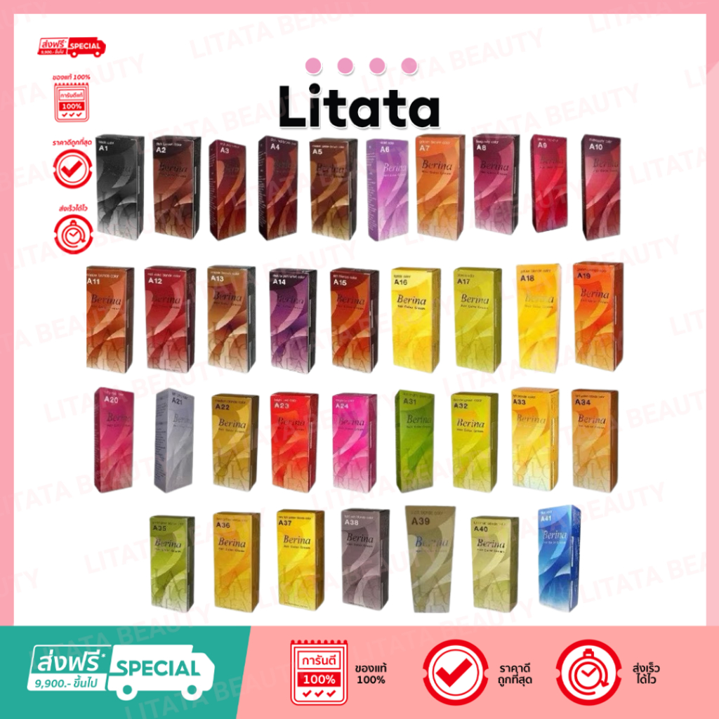Berina เบอริน่า ครีมเปลี่ยนสีผม สีย้อมผม ปิดผมขาว ปิดหงอก สีแฟชั่น Berina Hair Color 60กรัม