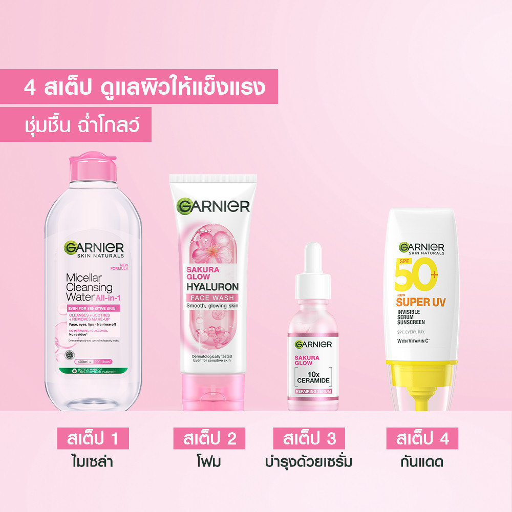การ์นิเย่ ซากุระ โกลว์ ไฮยาลูรอน คลีนซิ่ง โฟม 100 มล.x2 GARNIER CLEANSING FOAM (โฟมล้างหน้า,คลีนซิ่ง)