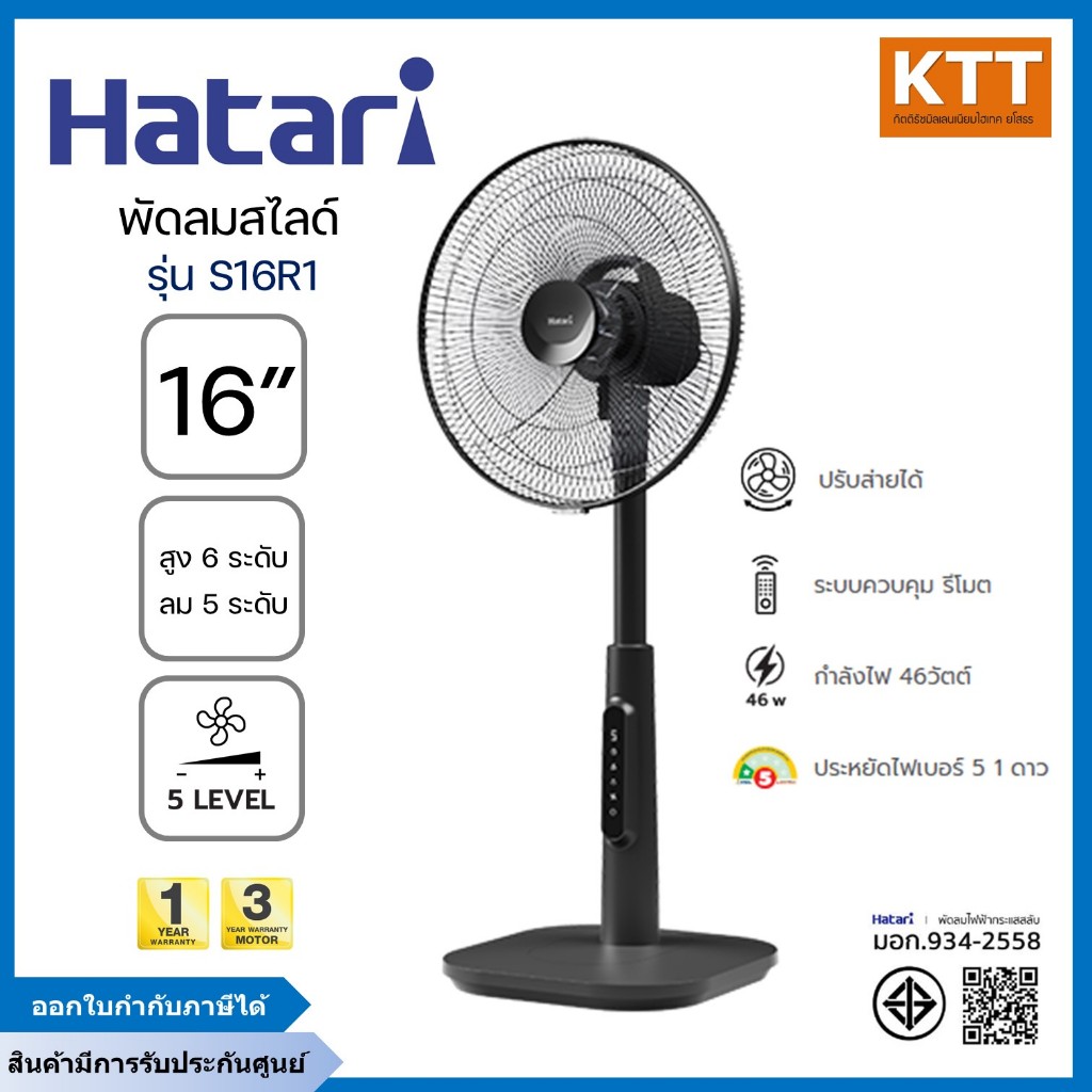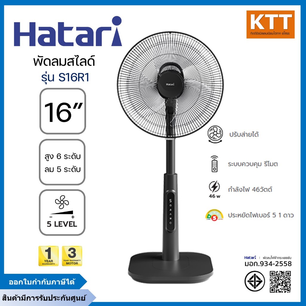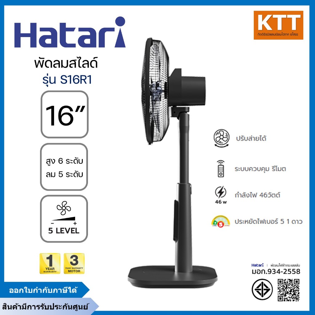 HATARI พัดลม สไลด์ ขนาด 16 นิ้ว รุ่น S16R1 สีดำ รุ่นใหม่