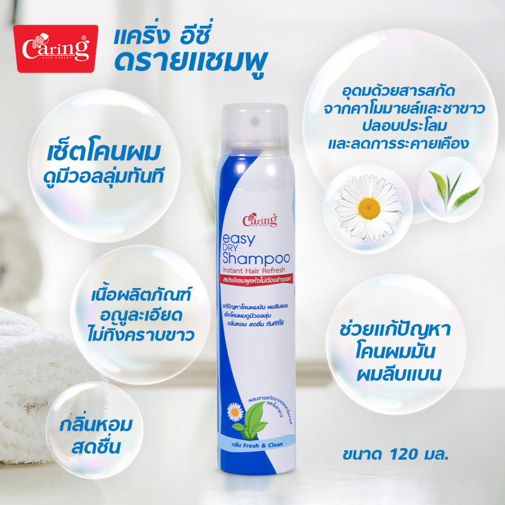 [แพ็คคู่ถูกกว่า] Caring Easy Dry shampoo ดรายแชมพู สเปรย์แชมพูแห้งไม่ต้องล้างออก 120 ml.