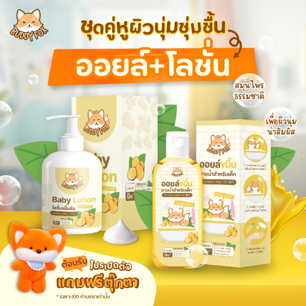 Buddy Fox โลชั่นขมิ้นชันไทย ครีมทาผิวเด็ก ลดผดผื่นคัน รอยดำ รอยแดง