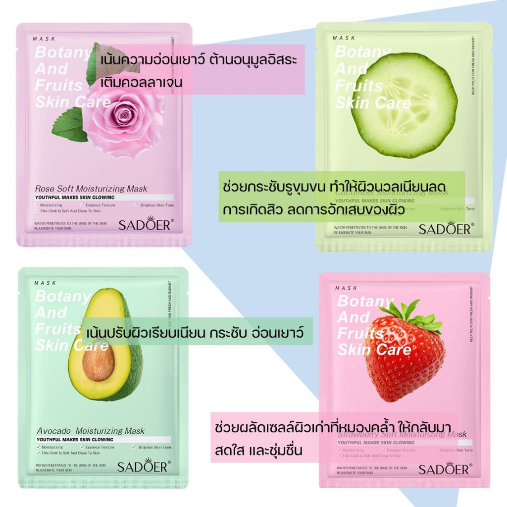 【10 แถม 10】ชุดมาสก์หน้า เซตมาส์กหน้า มาส์กหน้ามากมาย แตงกวา ว่านหางจระเข้ คอลลาเจน กรดไฮยาลูโรนิก วิตามินซี ราคาดีกว่า