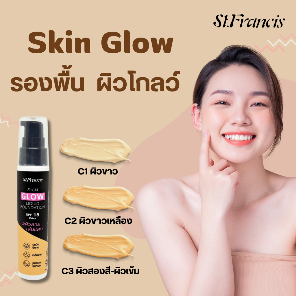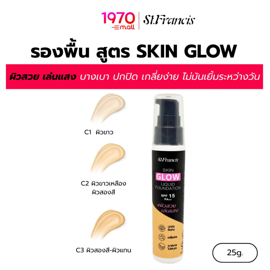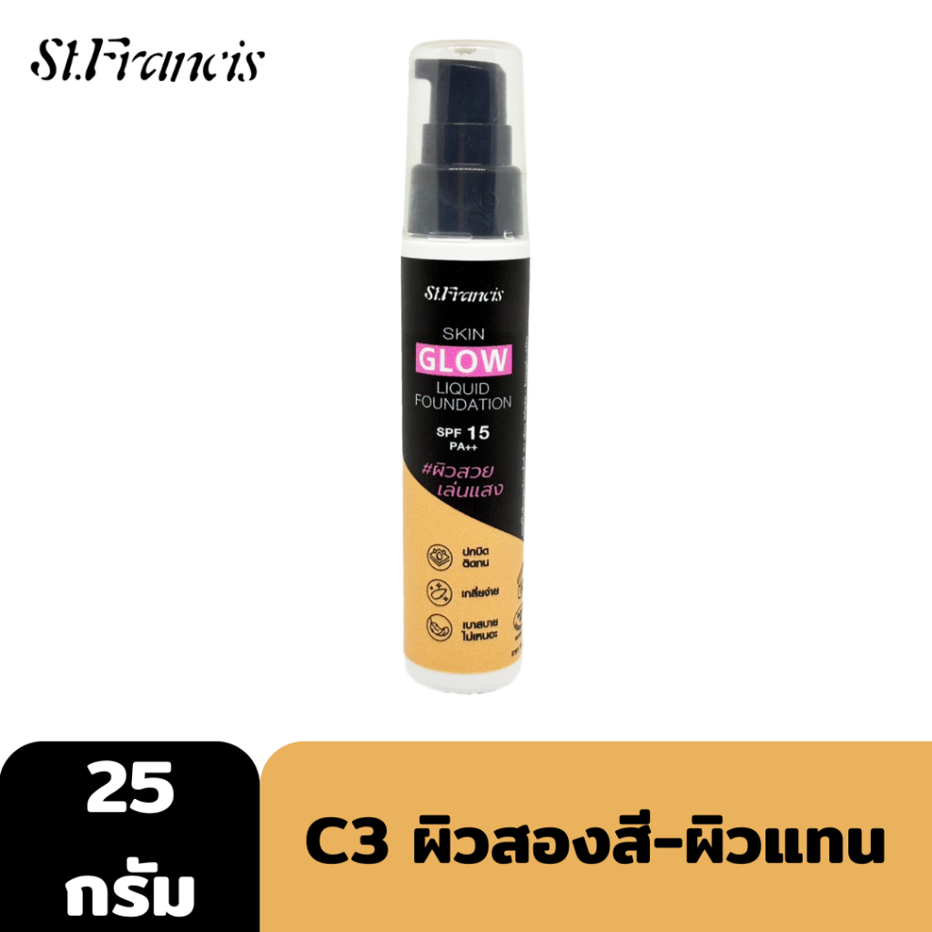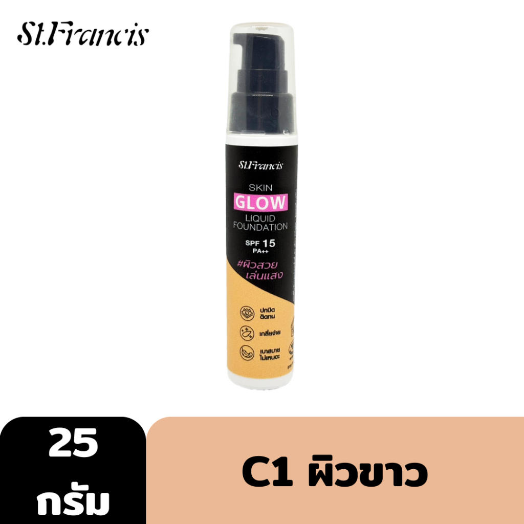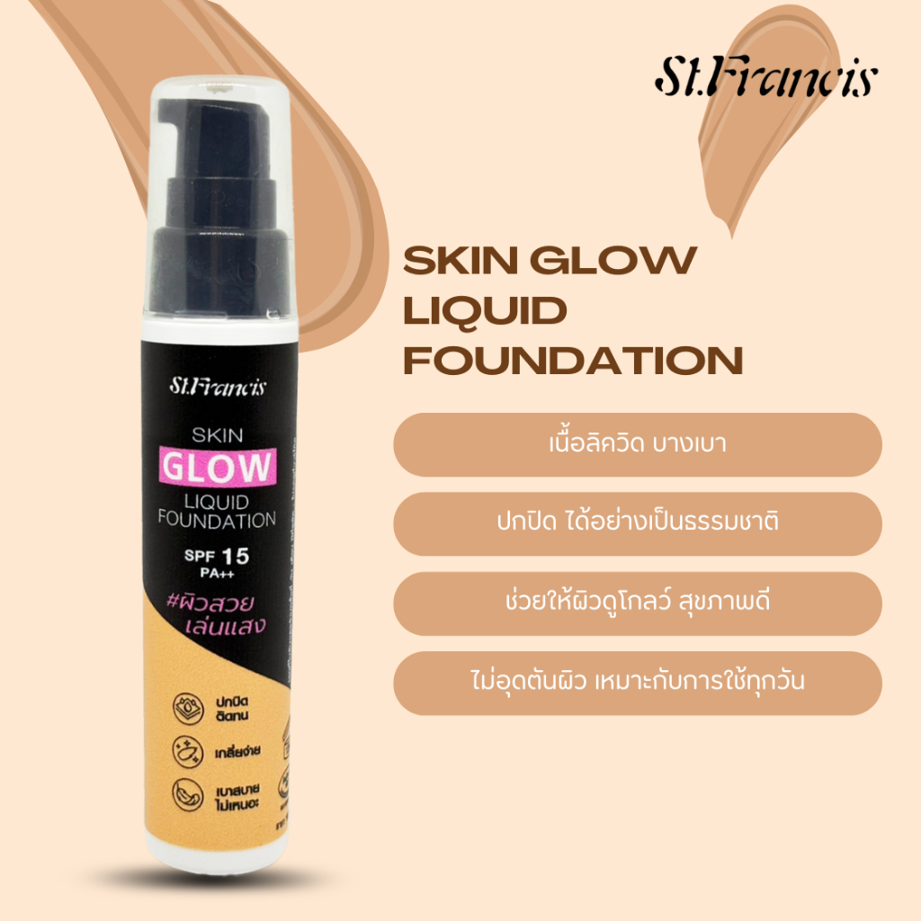 ST.FRANCIS รองพื้น SKIN GLOW LIQUID FOUNDATION 25g. เนื้อลิควิด บางเบา ผิวโกลว์สวย
