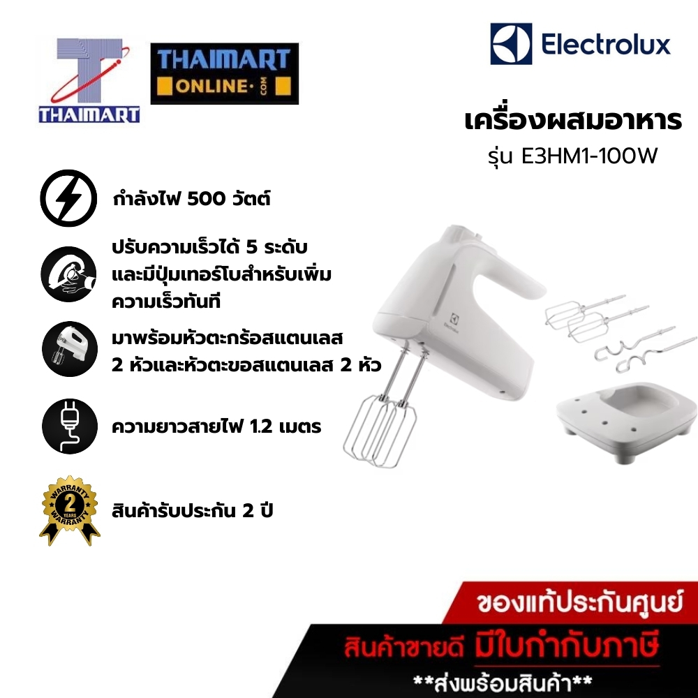 Electrolux เครื่องผสมอาหาร รุ่น E3HM1-100W รุ่นใหม่! (500วัตต์) Thaimart l ไทยมาร์ท **จำกัดการซื้อสูงสุด 2 เครื่อง | 1 อ