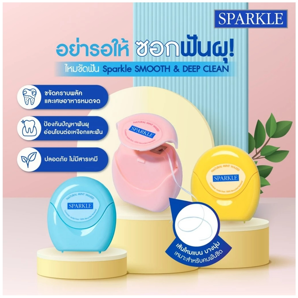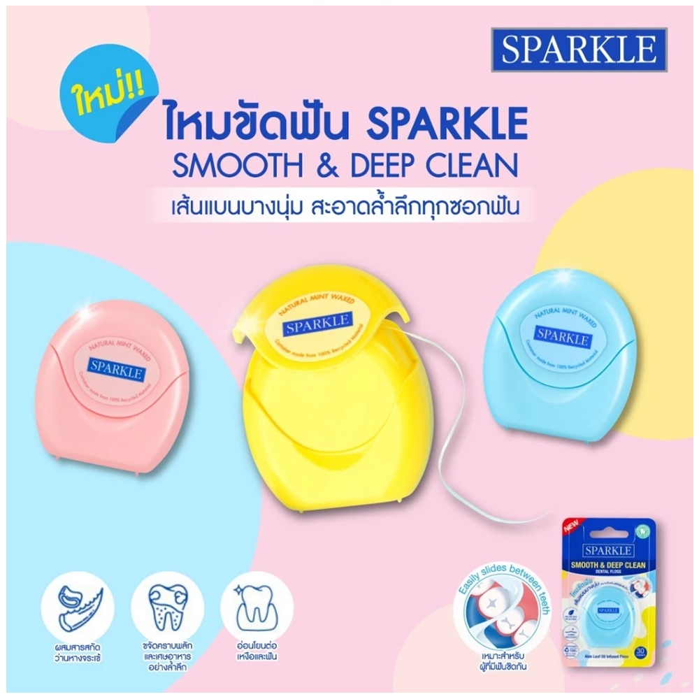 *[ซื้อ 1 แถม 1] Sparkle Smooth & Deep Clean Dental Floss 30 m. สปาร์คเคิลสมูท แอนด์ ดีพ คลีน เดนทัลฟลอส (*สุ่มคละสี*)