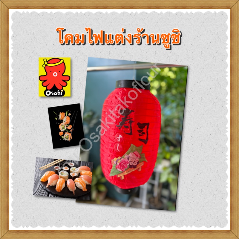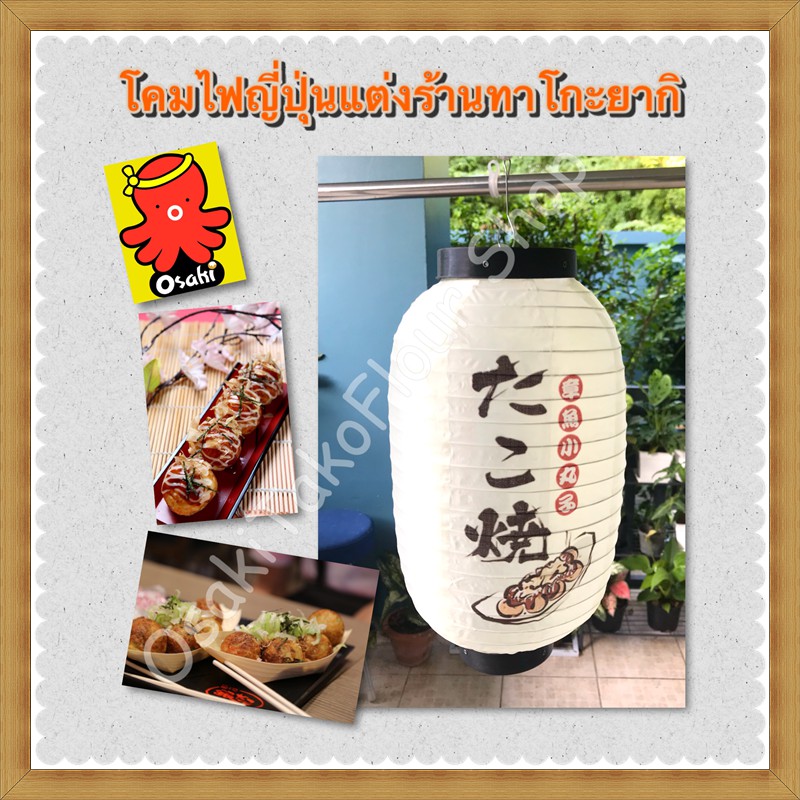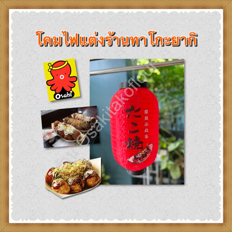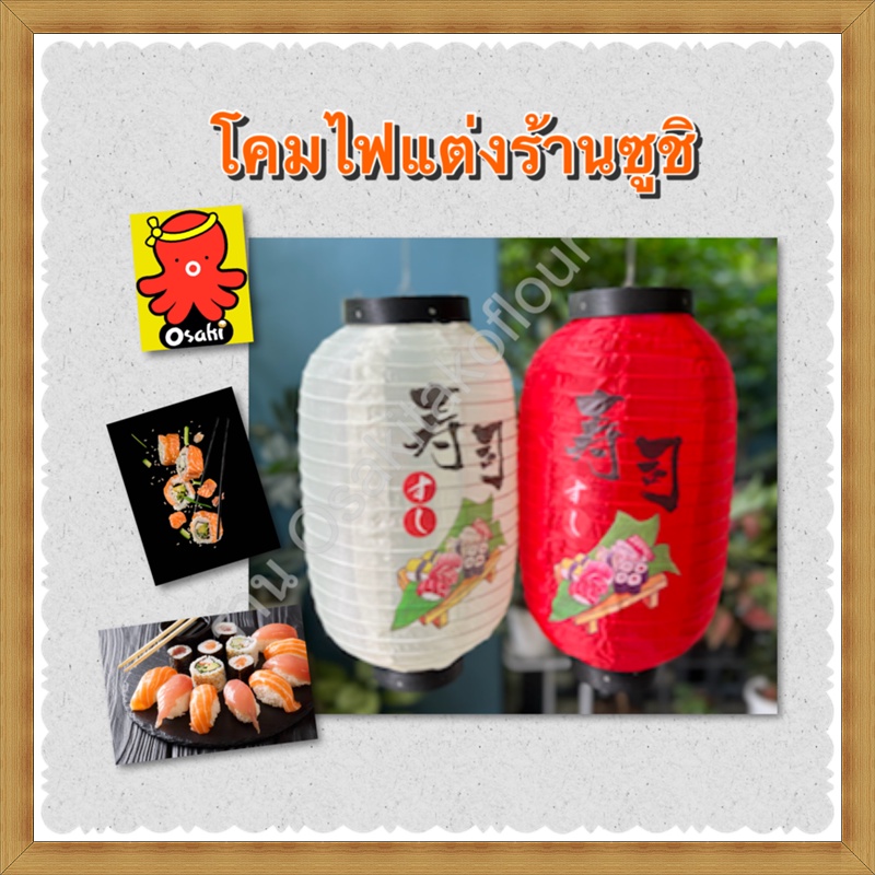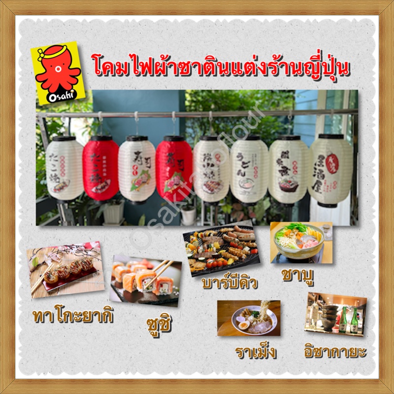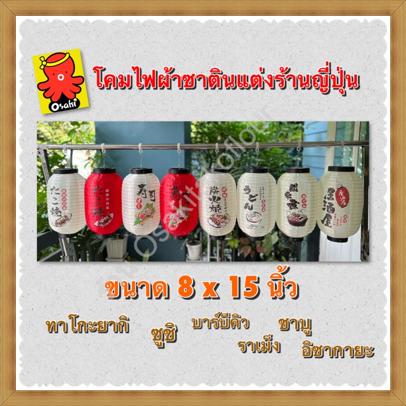 โคมไฟญี่ปุ่นผ้าสีขาว สีแดง ลายร้านทาโกะยากิ ซูชิ ราเม็ง บาร์บีคิวปิ้งย่าง ชาบู อิซากายะ ขนาด 8 นิ้ว