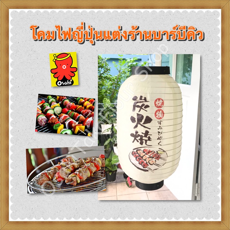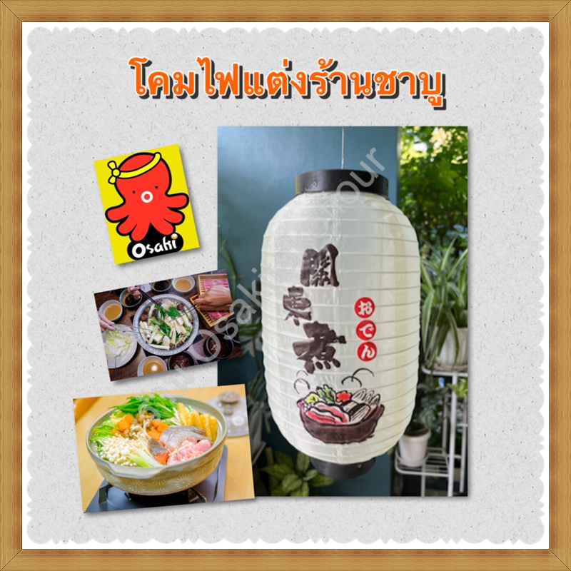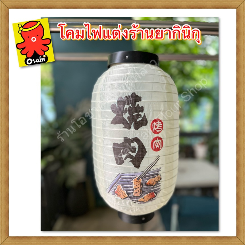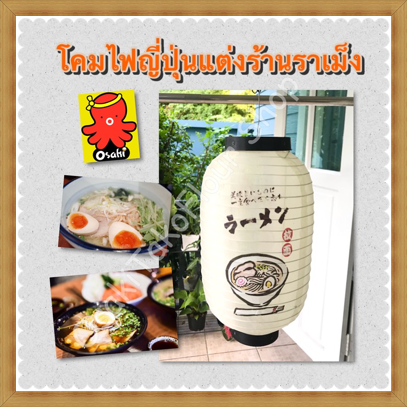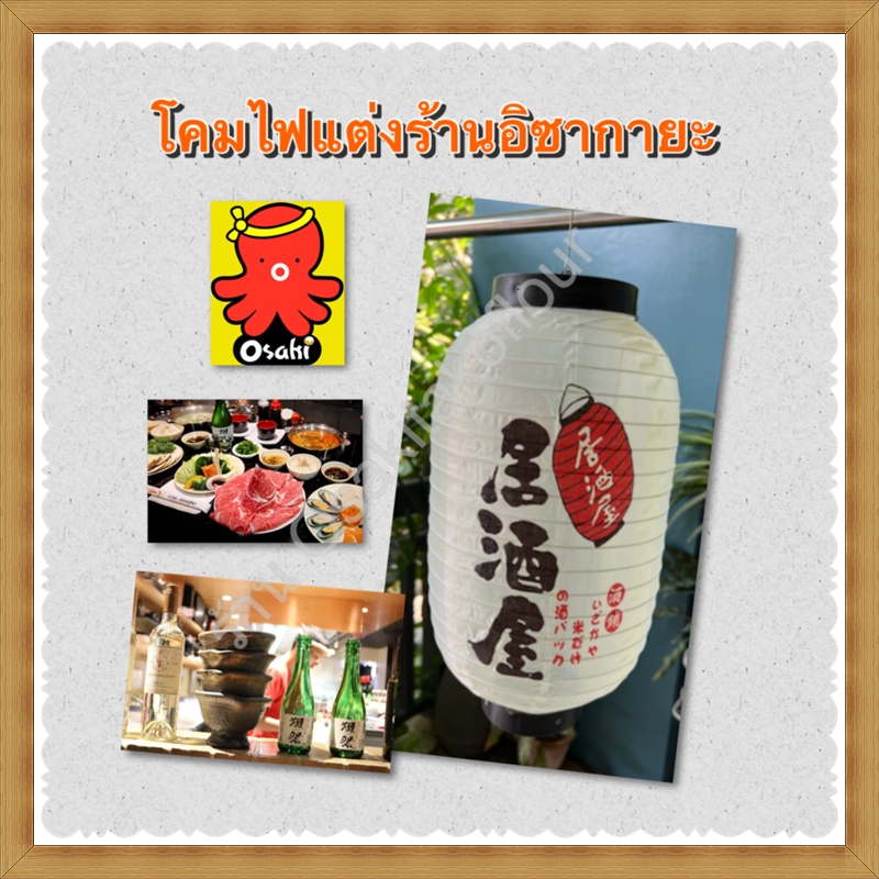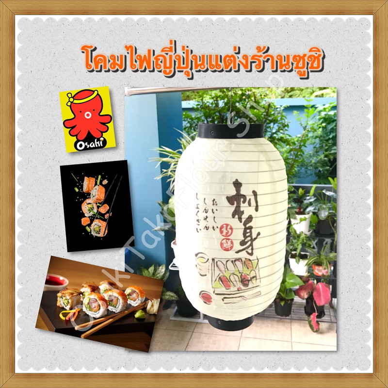 โคมไฟญี่ปุ่นผ้าสีขาว สีแดง ลายร้านทาโกะยากิ ซูชิ ราเม็ง บาร์บีคิวปิ้งย่าง ชาบู อิซากายะ ขนาด 8 นิ้ว