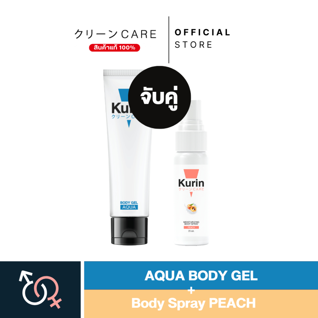 KURIN CARE AQUA BODY GEL เจลหล่อลื่น สูตรน้ำ ขนาด 100 ml และ BODY SPRAY PEACH สเปรย์ฉีดบำรุงผิวกาย ขนาด 25 ml.