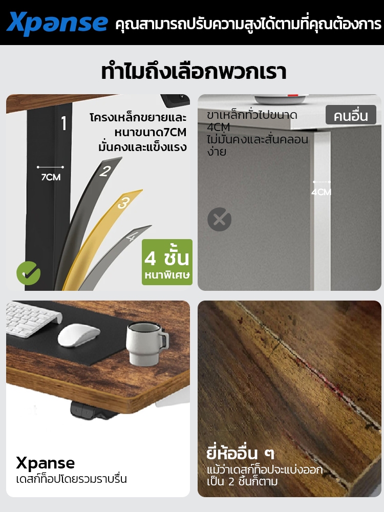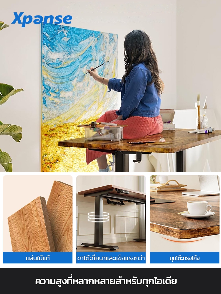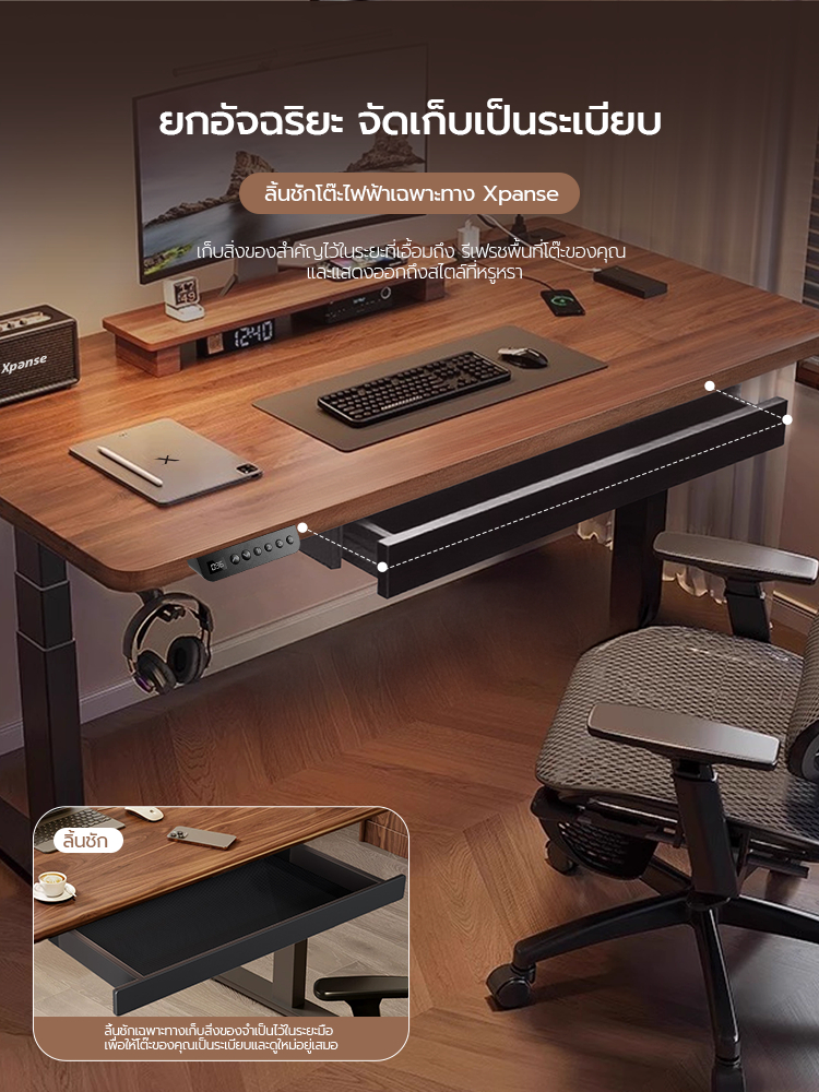 XPANSE โต๊ะปรับระดับไฟฟ้า แผ่นรองโต๊ะหนัง โต๊ะคอม โต๊ะทำงานยืดหยุ่นไฟฟ้า ที่เหมาะสมต่อรูปร่างมนุษย์ ใช้ได้สำหรับการทำงาน