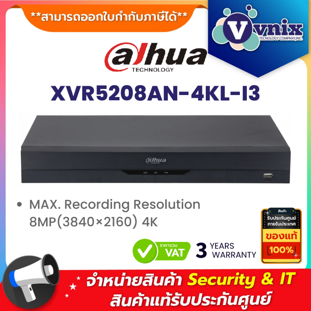 XVR5208AN-4KL-I3 เครื่องบันทึกภาพ กล้องวงจรปิด DAHUA 8 Channels Penta-brid 4K-N/5MP 1U 2HDDs By Vnix group