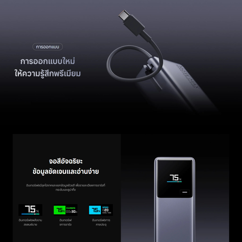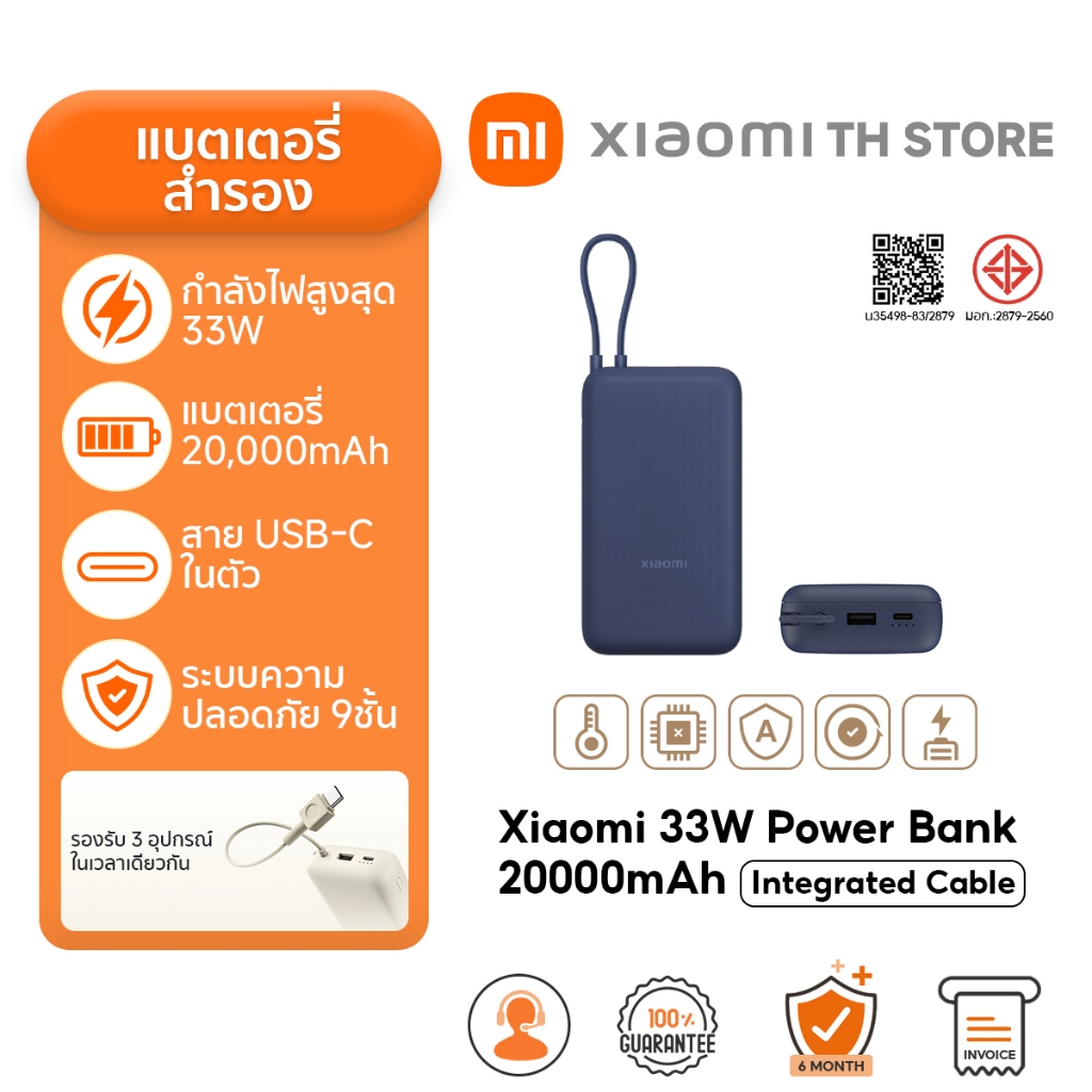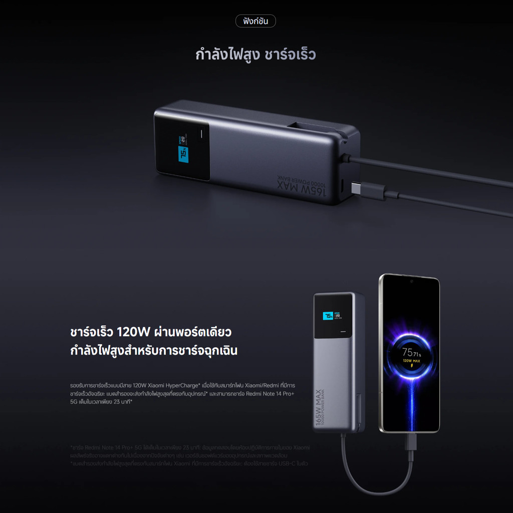 Xiaomi 165W Power Bank 10,000mAh Integrated Cable แบตสํารอง I มาพร้อมสาย I ปรับกำลังไฟอัตโนมัติ I จอสีอัจฉริยะ