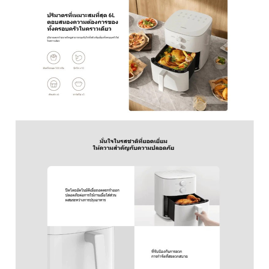 Xiaomi Air Fryer Essential 6L หม้อทอดไร้น้ำมันขนาด 6 ลิตรกำลังไฟ 1550W มาพร้อมตะกร้าทอดอัพเกรดใหม่ให้ความร้อนที่ทั่วถึง
