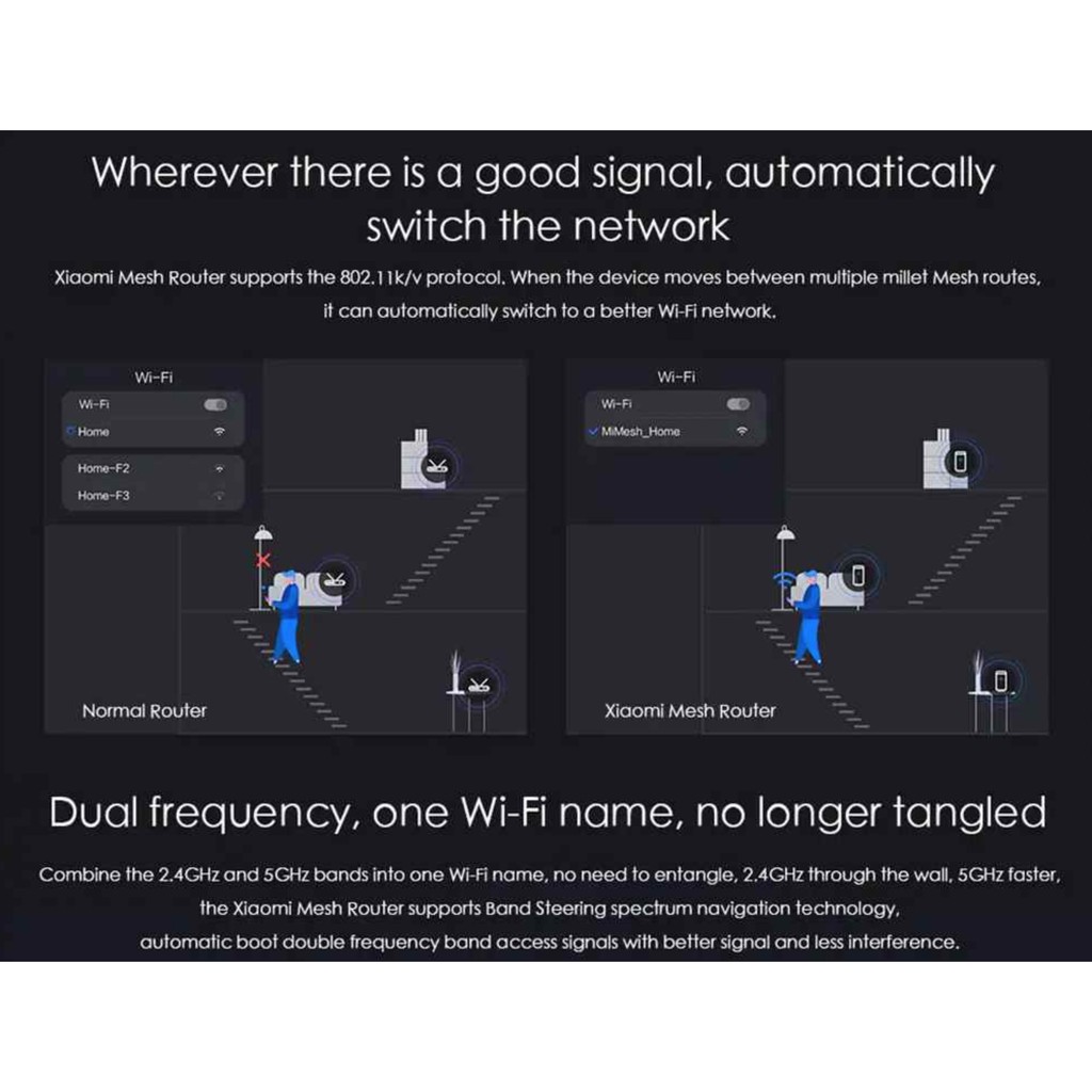 Xiaomi Mesh Router 2.4G+5G Smart Xiaomi Mesh WiFi Router AC1300+1000M LAN 2567Mbps Gigabit 4 Core 4 Signal Amplifier