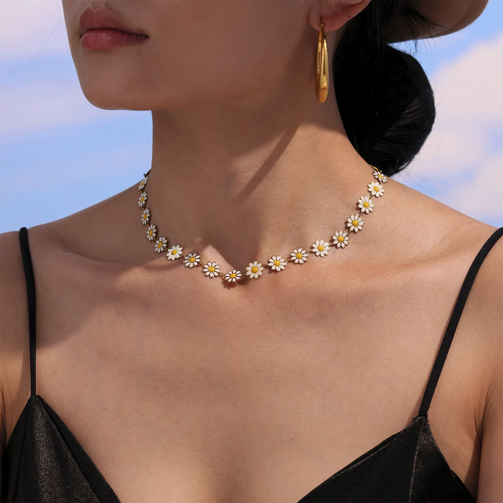 สร้อยคาวินเทจสำหรับผู้หญิง ออกแบบด้วยลายดอกไม้และกระดูก