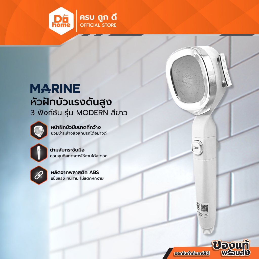 MARINE หัวฝักบัวแรงดันสูง 3 ฟังก์ชั่น รุ่น MODERN สีขาว |ZWF|
